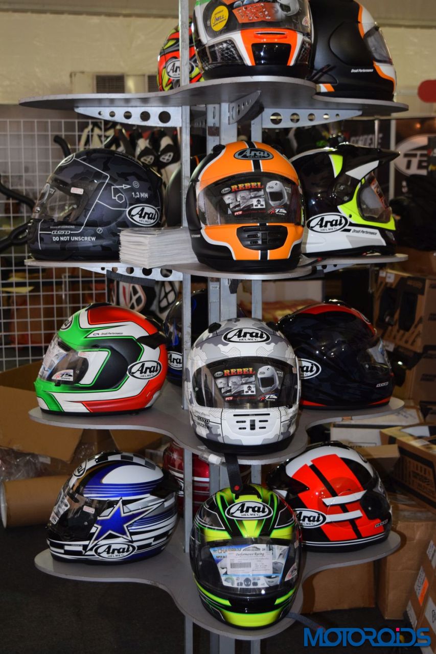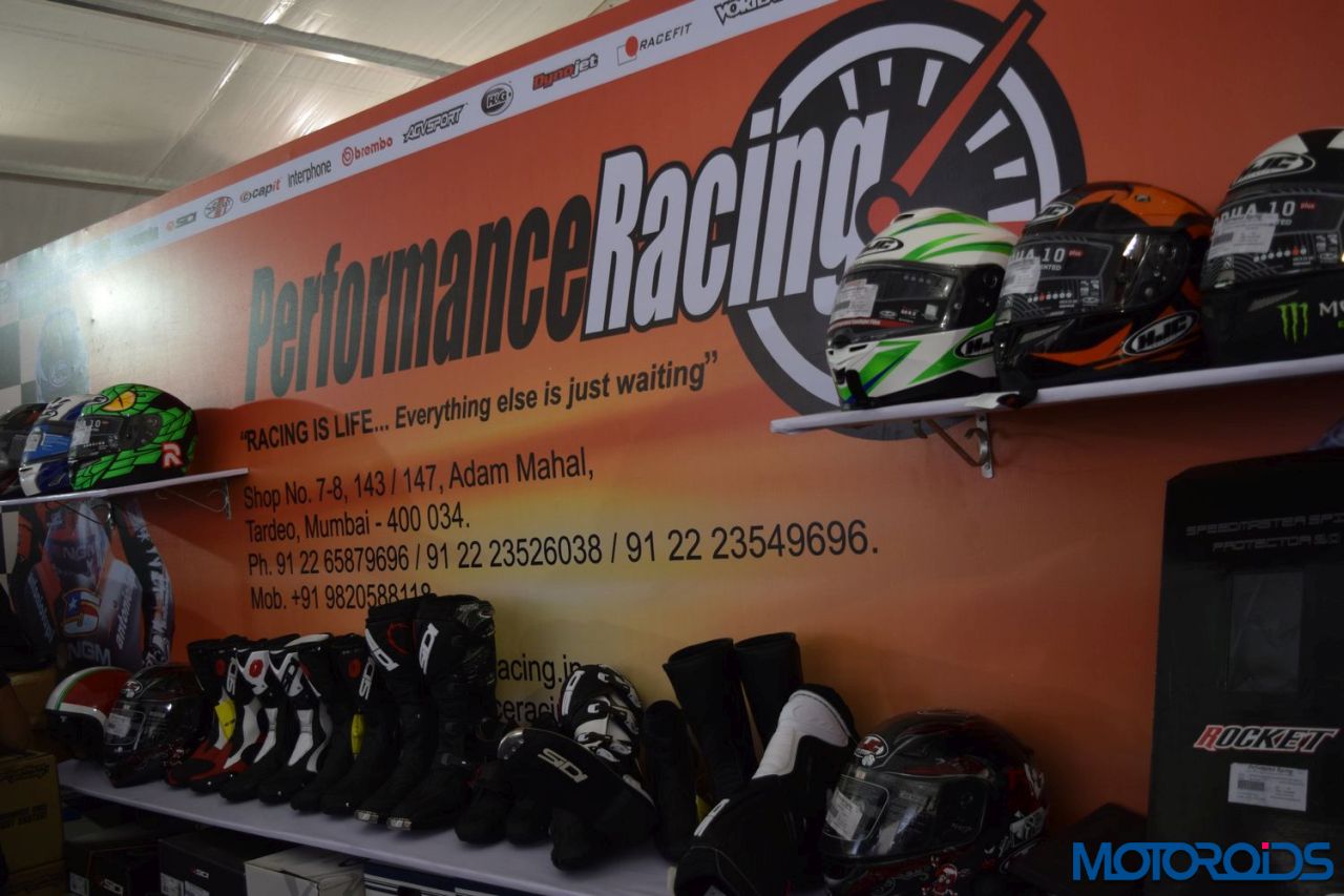 Performance Racing exhibit displayed high end Arai helmets and track-day focussed bike accessories