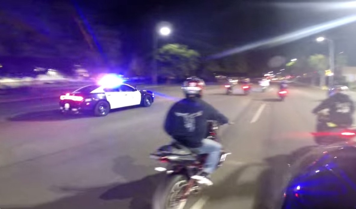 You can’t generalize as to who’s a dimwit based on whether he is driven by four wheels or two. A dimwit is a dimwit, irrespective – like each one of the motorcycle riders in this video is. The gang of outlaw bikers in the footage is out on a rampage. The guys riding motorcycles here have such disregard for law that this video might as well have been a Hollywood action flick. Popping wheelies, performing powerslides and jumping traffic lights with nonchalance, even as a cop car chases them, along with a pursuit chopper, the riders break every law in the book. And they ride ahead without looking back even as one of their ‘fellow’ riders crashes and tumbles on the road – so much for biking brotherhood.
