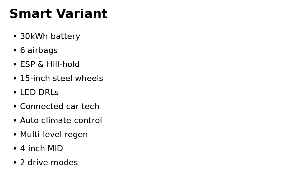 The Smart Plus with the 40 kWh battery has a decent range and features, which is why it is a good balance to buyers who are value-oriented.