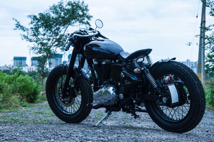 Bringing you another creation of from Eimor customs, here is a Royal Enfield based bobber which shows us that simplicity and style go hand in hand. This Royal Enfield is customised to be a bobber without shouting out too loud. The brainchild of Eimor customs and their client Mr Srinivas, this bike was made according to the vision that Mr Srinivas had. Eimor customs tells us the client came to them with exactly what he wanted and images of other bikes this build was to be inspired from. After a discussion with the team of Eimor customs, the bike was conceived and named 43, for the owner Mr Srinivas turned 43 this year.