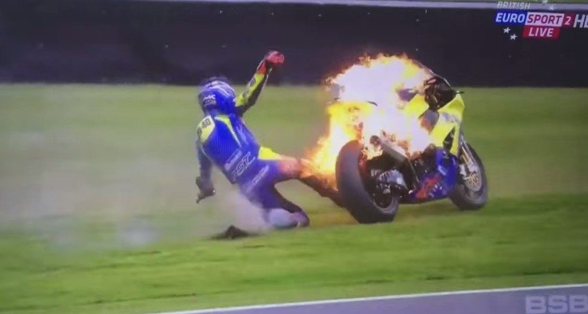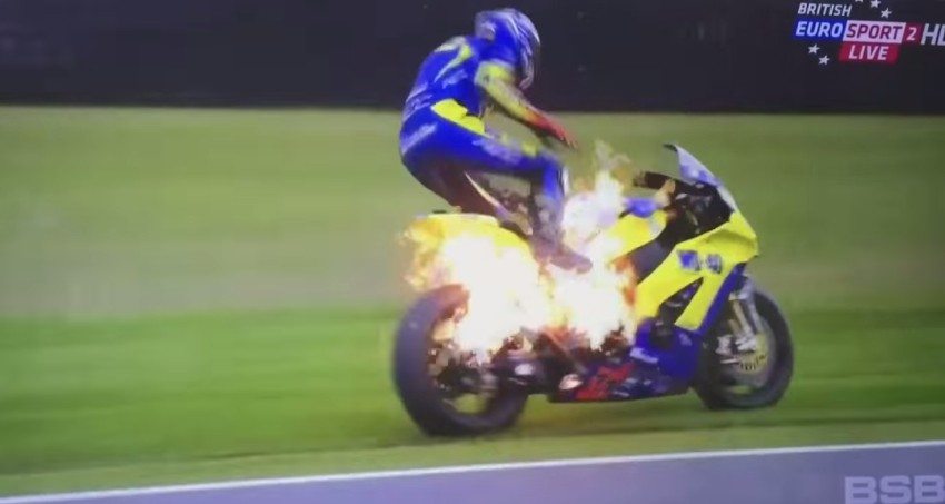 Even though Mackenzie was wearing his racing gear, he surely felt some of the heat on his rear-end. Thankfully, the rider of the British Superbikes Championship escaped relatively unharmed, though the same can’t be said about his fiery motorcycle. It is rather fortunate that his bike didn’t explode, which wouldn’t have been surprising, given the intensity of the flames.