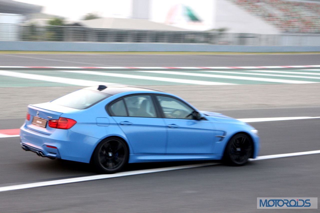 The M3 looks fetching in Yas Marina Blue- the metallic paint-job is a 35,000 rupee (approx.) option.