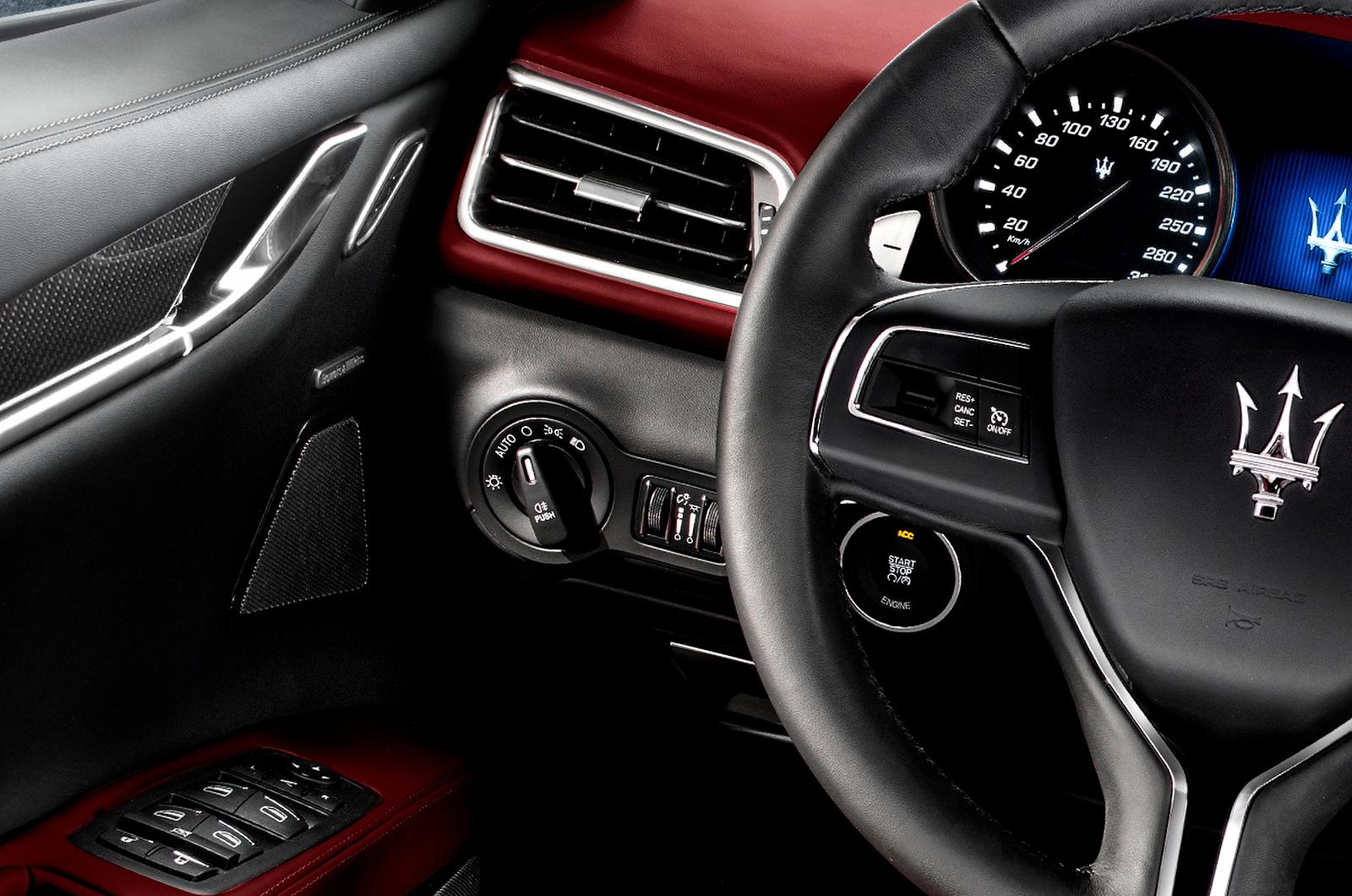 The Maserati Ghibli is being publicized as a sportier car than the Quattroporte and the engine options include two 3.0-liter turbocharged V6 engines. The diesel variant, which will be powered by a 3.0-liter turbocharged V6 diesel engine, will become the first diesel powered car in the history of Maserati. The engines will come mated to an 8-speed automatic transmission and the buyer will get an option of choosing between rear-wheel drive and the Q4 all wheel drive.