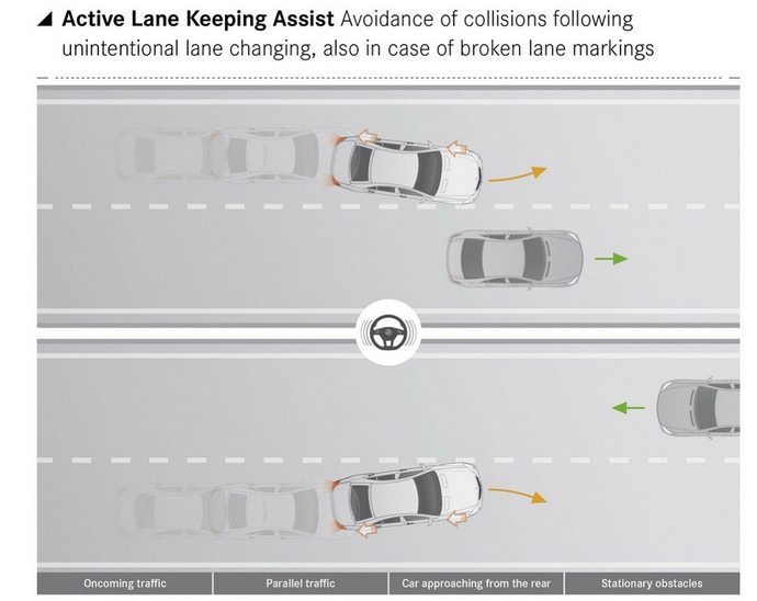Active Blind Spot Assist will caution the driver of the traffic at the blind spots.