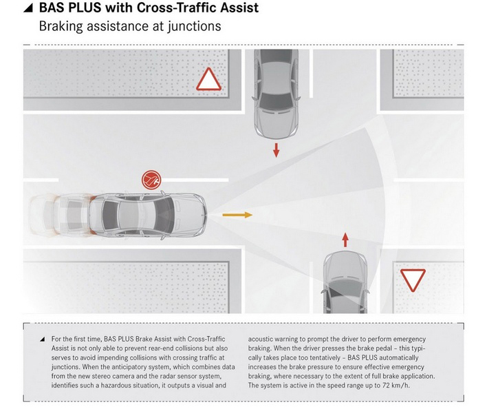 The new Traffic Sign Assist can also identify no overtaking/parking zones and traffic signals. BAS PLUS with Cross Traffic Assist helps wiping away chances of rear end collisions and sticky situations in the cross traffic at junctions. This is done by automatically boosting the brake pressure in case of driver being unaware of the dangers that are looming.