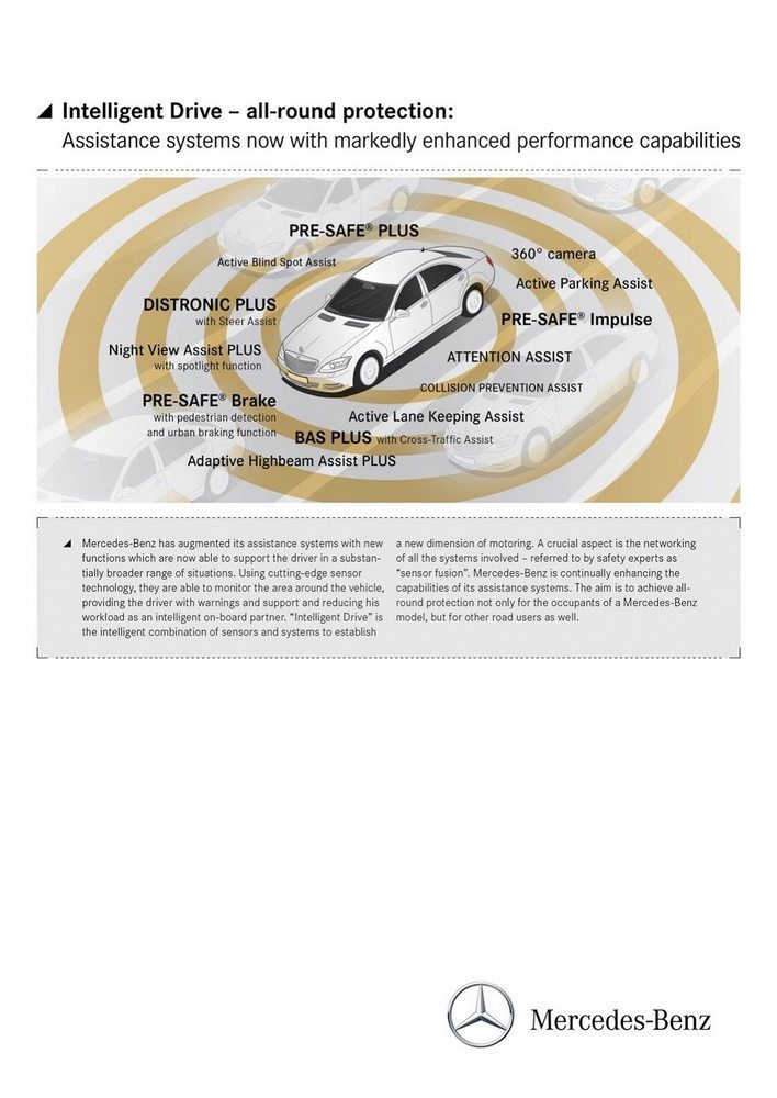 The 2014 Mercedes Benz S Class will come with new safety feature package that is absent on every other car in its segment.