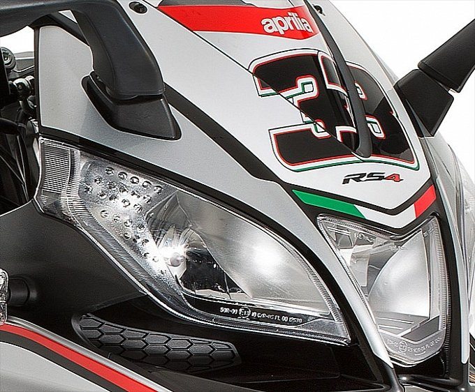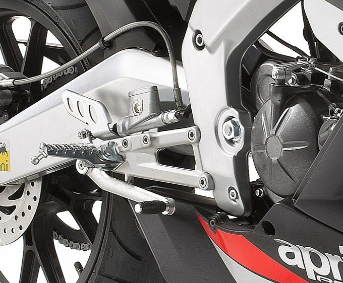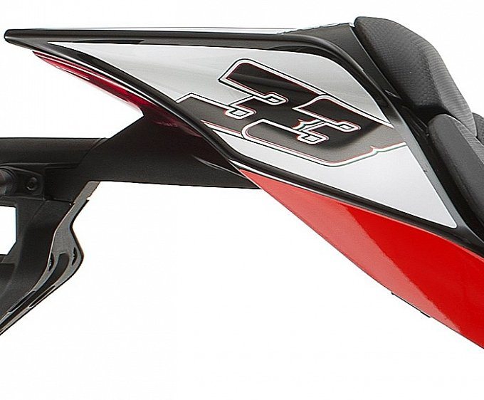 The RS4 125 Replica, even with the pint sized capacity is still has thoroughbred racing intentions. The frame is SBK derived, with two lateral beams of die-cast aluminum alloy with crossed reinforcements for excellent stiffness and torsional rigidity. There are 41 mm upside down forks up front, while the rear sees a monoshock mounted on an asymmetrical swing arm.