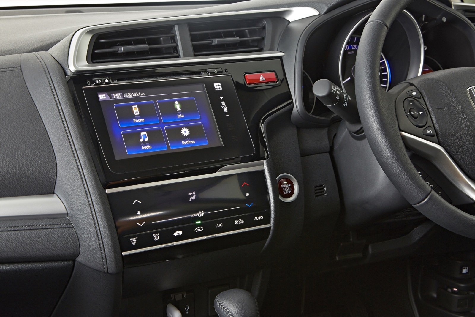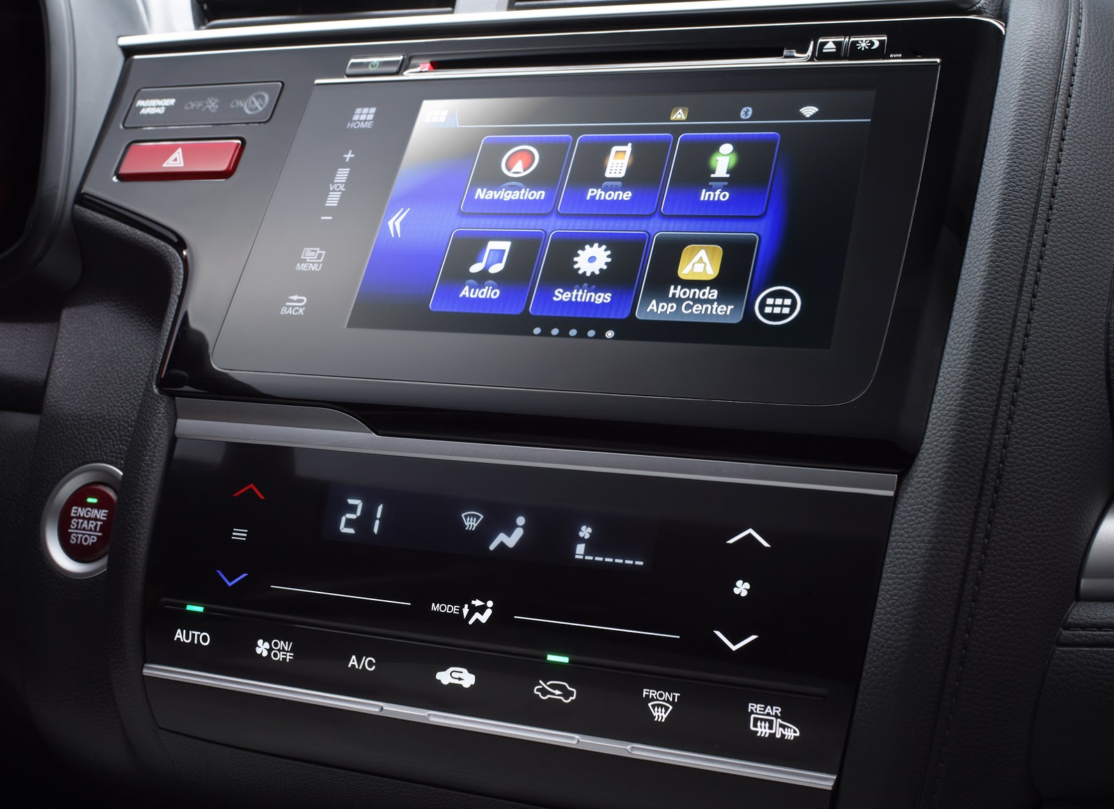 Honda-Jazz-Interior-2015The Honda Connect interface employs smartphone-style ‘pinch, swipe and tap‘ functionality. Running the Android operating system, it provides fast and easy access to internet-based services including internet browsing, real-time traffic, news and weather, social media, and internet music stations. Further apps can be installed from the purpose-designed Honda App Centre, enabling owners to personalise their connected infotainment experience, and integrated Garmin Navigation is available.
