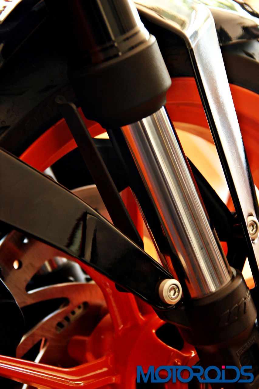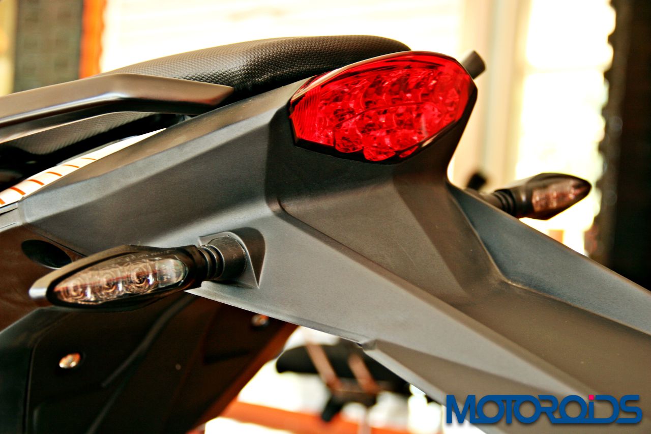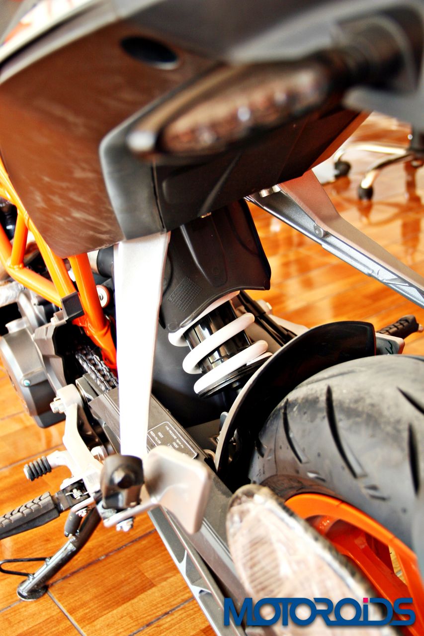The LED turn indicators and tail light now receive a blackened at borders to make them look more meaner . The front upside down suspension also receives extra protection in the form of plastic cladding to thwart mud and muck flying off the tyres. The rear mono suspension receives a plastic cover inside the white shock absorbing spring while a small piece of plastic protector hangs from the motorcycle for protection from dirt flying off the rear wheel. Moving further, the handle grips, similar to the ones found on the KTM’s RC series, are now updated for better comfort to the rider.