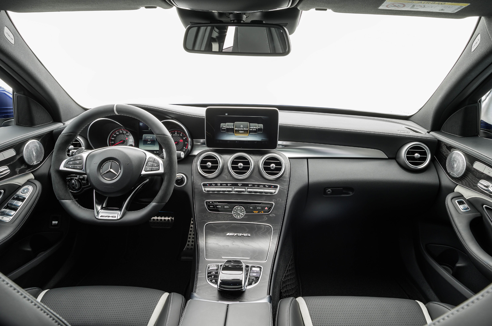 Apart from all that, there’s a standard multi-clutch AMG Speedshift MCT seven-speed automatic transmission taming all that power. Forced induction ensures improved fuel economy figures as well- the C 63 sips just 8.2 liters of fuel / 100 km (34.4 UK mpg; 28.6 US mpg) on the combined cycle and produces 192 grams of CO2 / kilometer, while the C 63 S sips 8.4 liters of petrol / 100 km (33.6 UK mpg; 28 US mpg) and produces 195 g of CO2 per km.