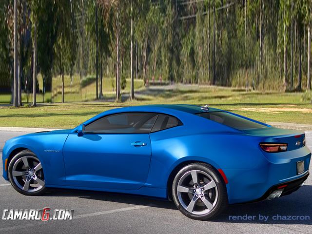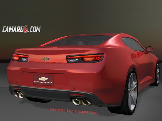 These renders, done by one chazcron on camaro6.com forums, hints at a faster roof-line than the current Camaro’s, and evolutionary front and rear ends, which will be unmistakably Camaro-esque. The quad exhaust outlets indicate that there will be a V-8–powered SS model, but the ZL1-style split-spoke wheels and the possible presence of a decklid spoiler could point to an even higher-performance variant.