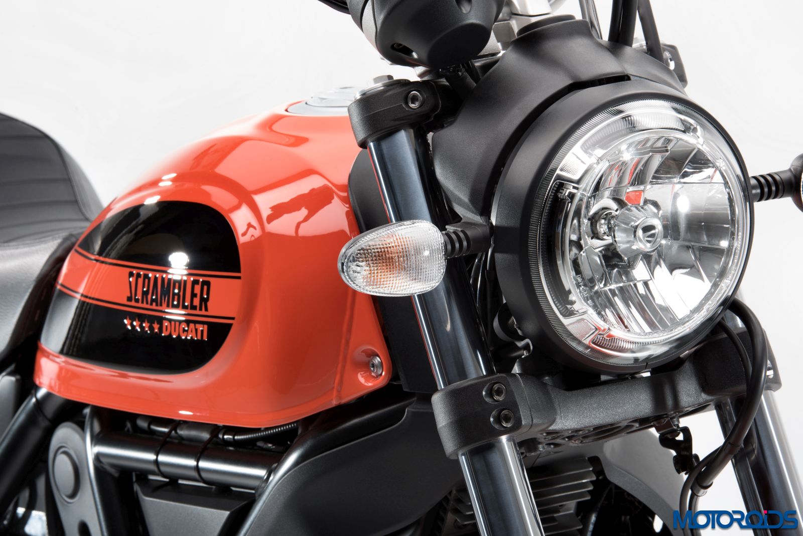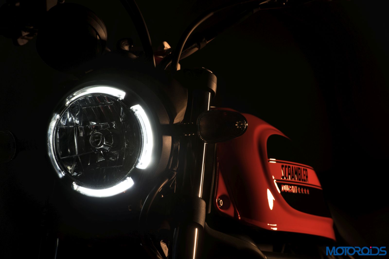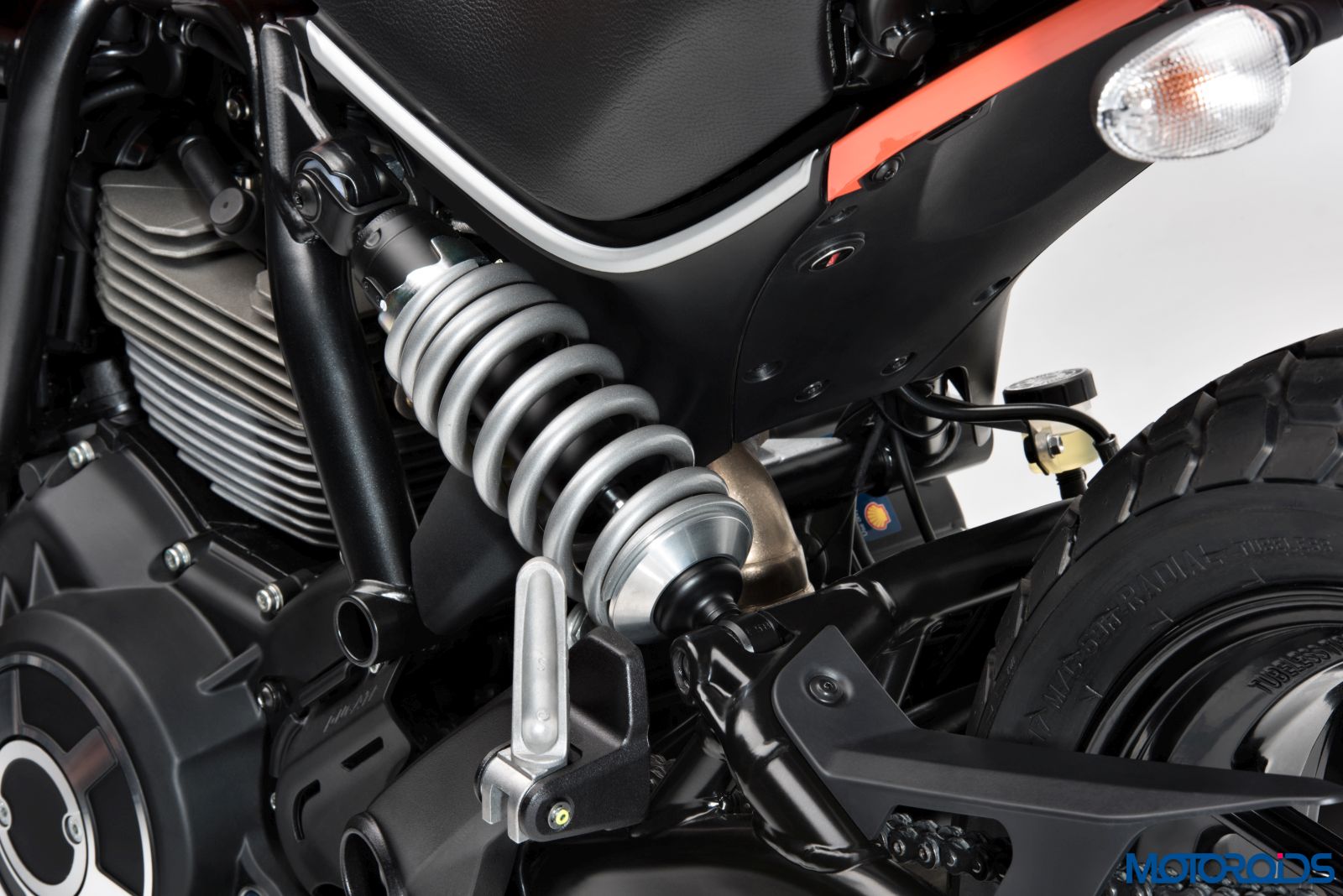 The headlight, with glass parabola and LED lightguide around the perimeter and the LED rear light is similar to other Scrambler versions. The Showa 41 mm traditional stanchion fork are aimed to lower the production cost to keep the prices competitive. A Kayaba monoshock with adjustable spring preload sits at the rear while both suspensions provide 150 mm of wheel travel. Clear glass blinkers accompany the headlight while a compact single-piece instrument cluster with a round assembly, instead of the centre, sits on the right hand side of the illumination unit. More on the instrument cluster later.