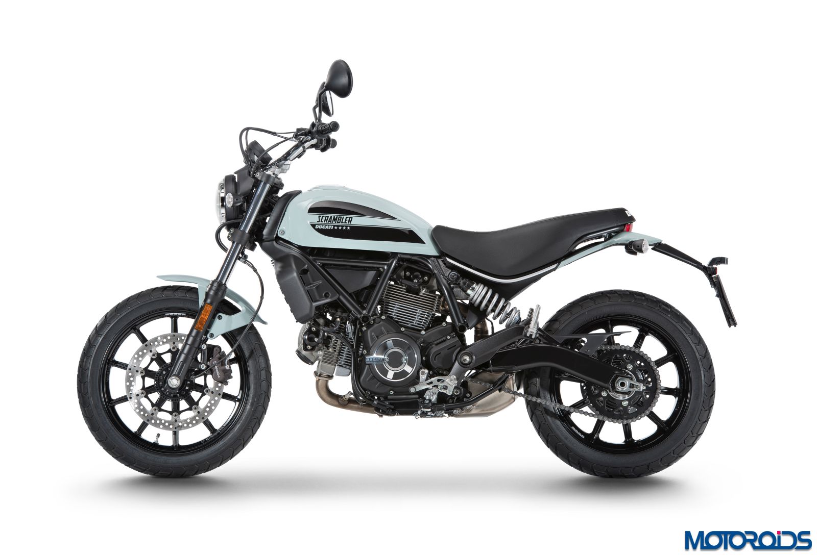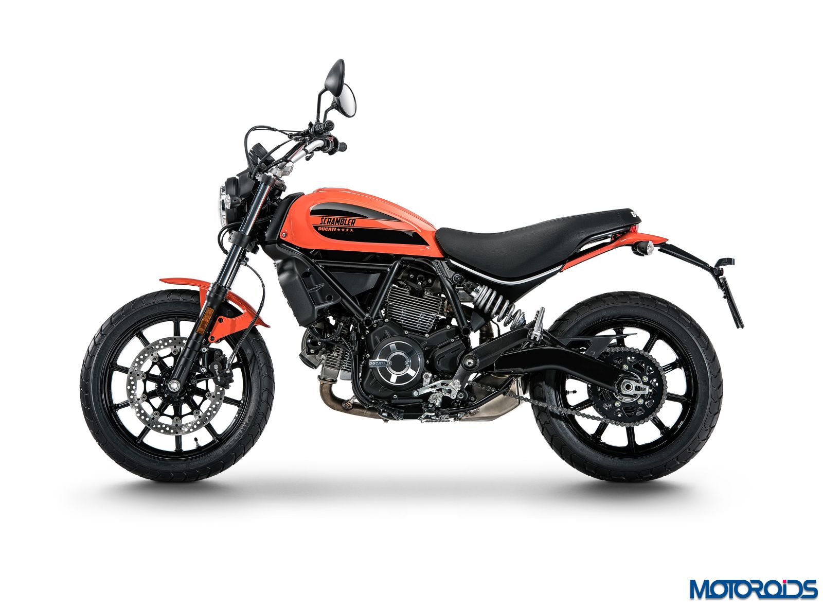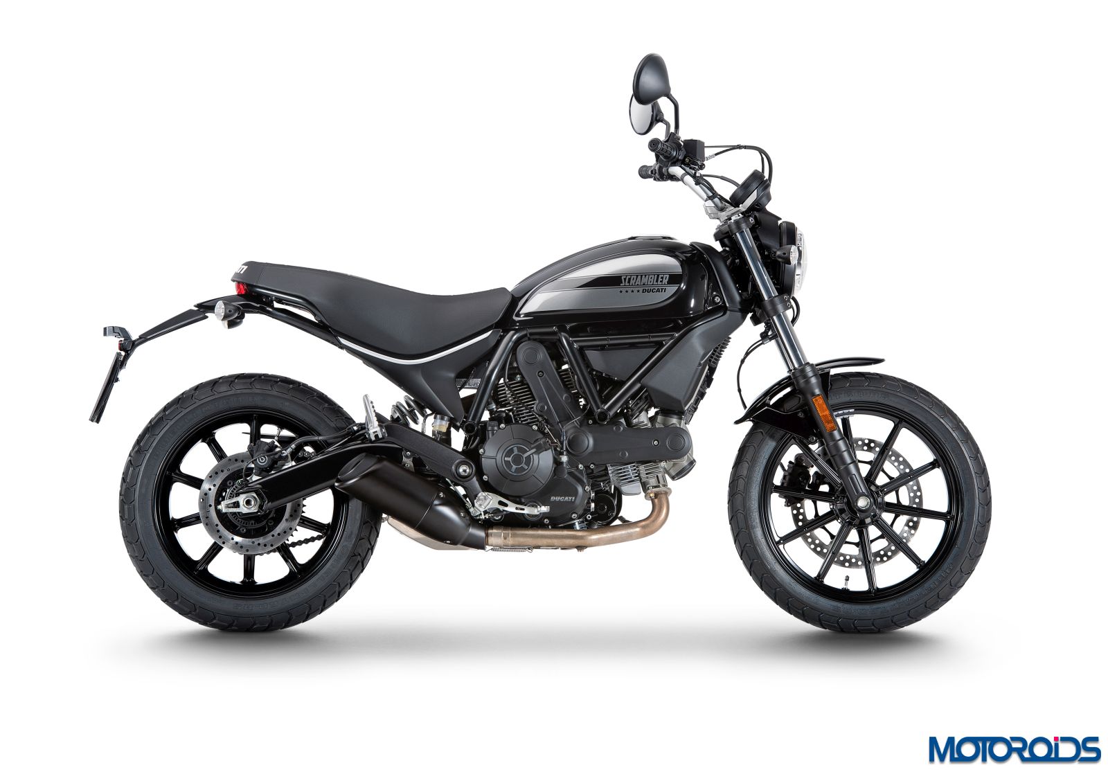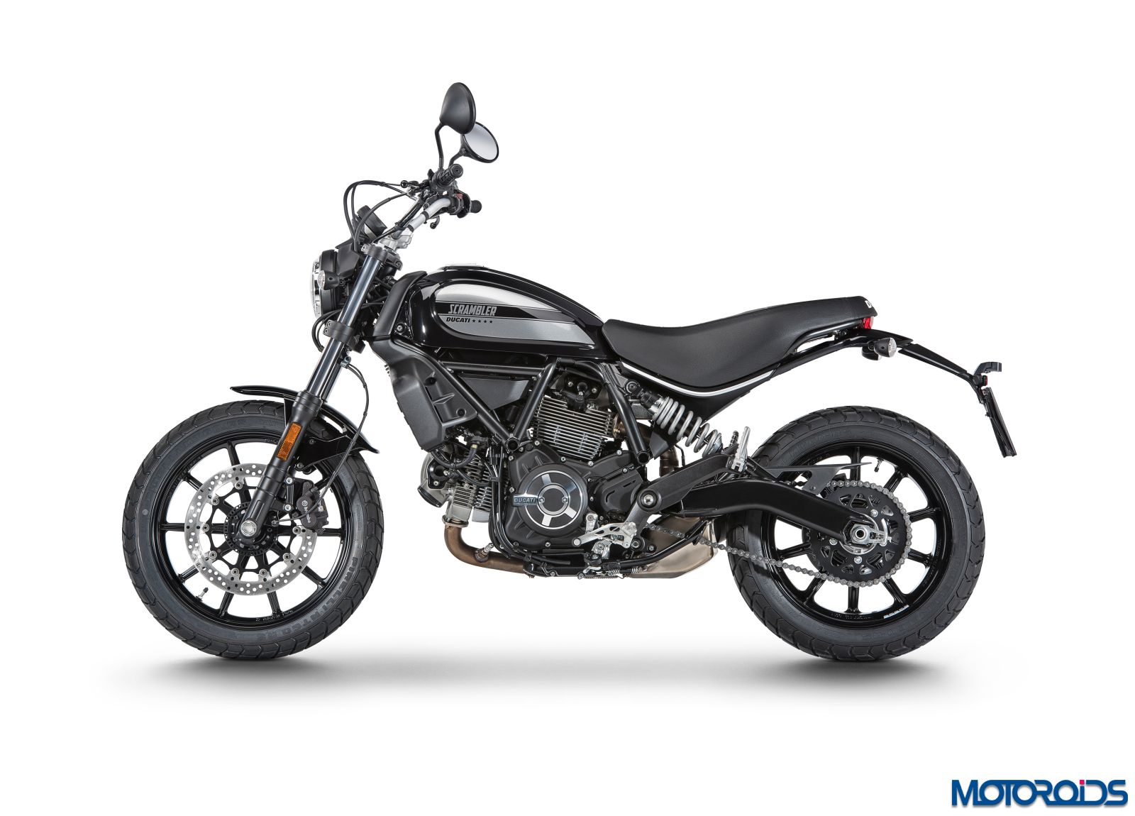 All new aluminium 10-spoke wheels come as standard on the Ducati Scrambler. The 3″ x 18″ front wheel and the rear 4.5″ x 17″ have been designed to be light. The wheels come wrapped in the new enduro-type Pirelli MT60 RS 110/80 R18 tyre at the front and the 160/60 R17 at the rear, featuring a chunky tread pattern. These tyres are produced exclusively for the Ducati Scrambler.