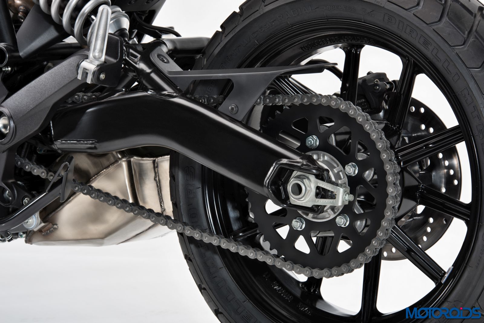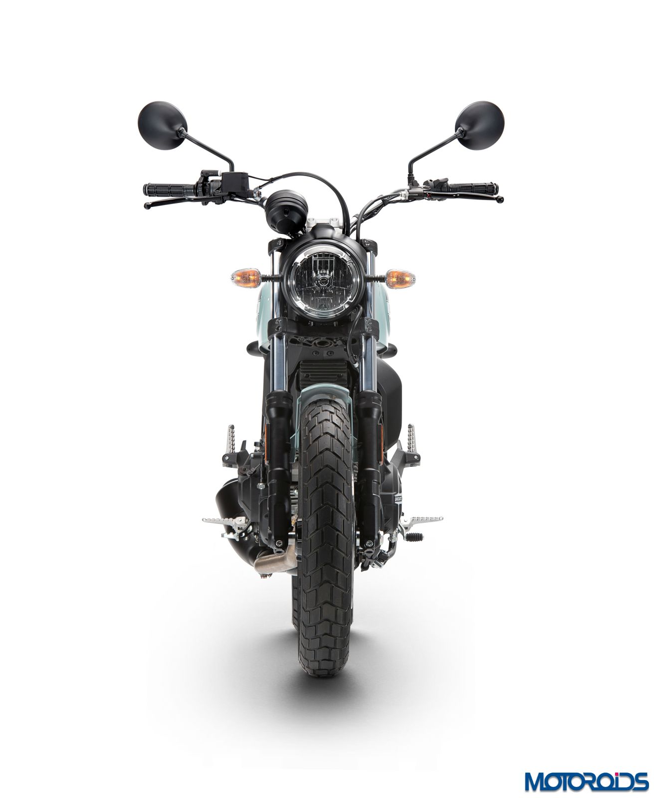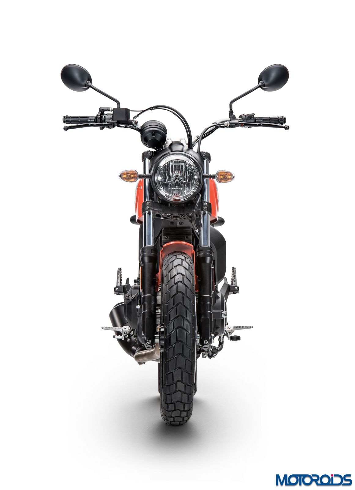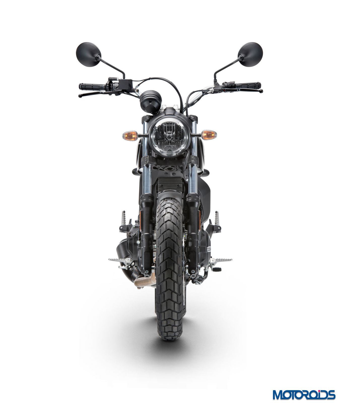 All new aluminium 10-spoke wheels come as standard on the Ducati Scrambler. The 3″ x 18″ front wheel and the rear 4.5″ x 17″ have been designed to be light. The wheels come wrapped in the new enduro-type Pirelli MT60 RS 110/80 R18 tyre at the front and the 160/60 R17 at the rear, featuring a chunky tread pattern. These tyres are produced exclusively for the Ducati Scrambler.