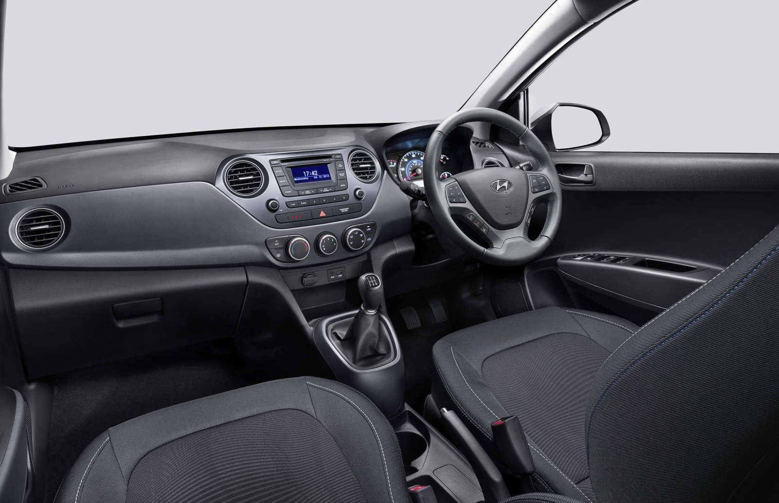 The i10 1.0 SE, the i10 1.0 GO! offers a sleek black interior with contrast blue and white stitching, Bluetooth voice recognition, steering wheel-mounted audio and phone controls and a leather-wrapped steering wheel. The exterior of the GO! boasts Go! Badging and exclusive to the i10 Go! Red Passion Pearl Exterior colour, LED daytime running lights, side body mouldings, privacy glass and front fog lights.