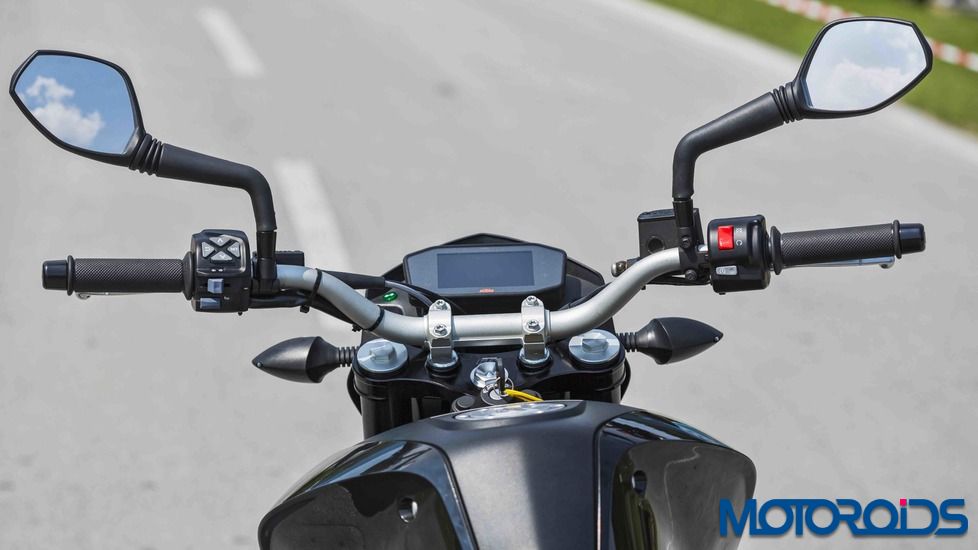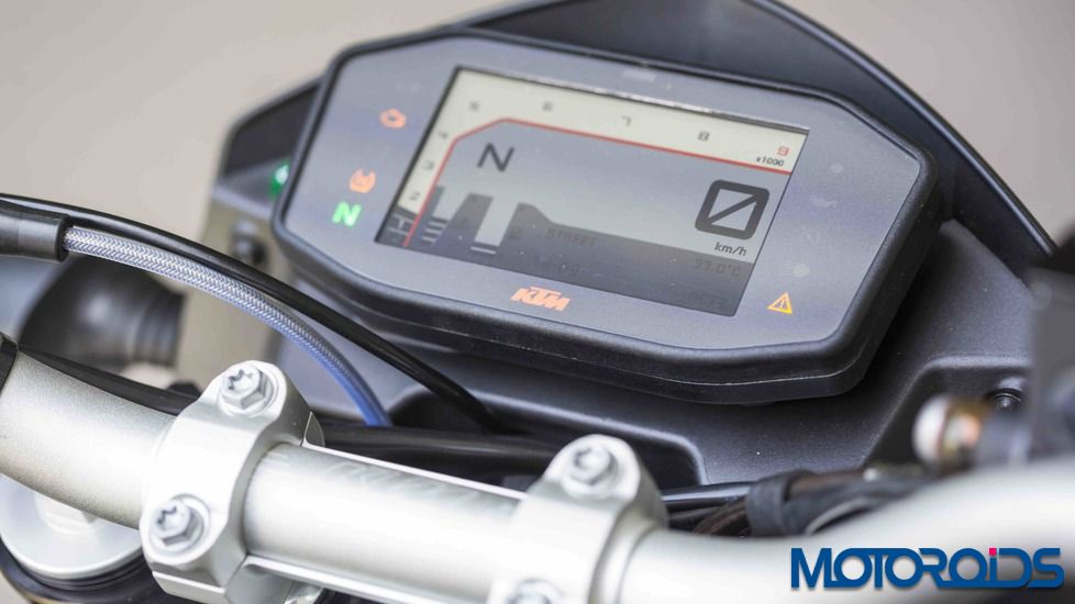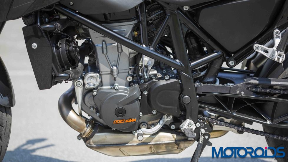 KTM has overhauled the engine on the 2016 690 Duke by increasing the bore from 102 mm to 105 mm and reducing the stroke from 84.5 mm to 80 mm, thus increasing the total displacement from 690cc to a slightly higher 693cc. The new engine is also claimed to be more refined, less vibey that the current model which is a welcome change. The power to the rear wheel can be transferred via three riding modes – Street, Sport, and Rain with a flick of a button from the switchgear on the left-side of the handlebar.