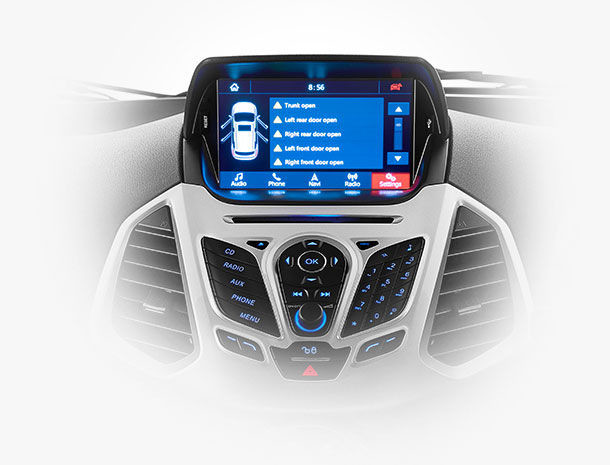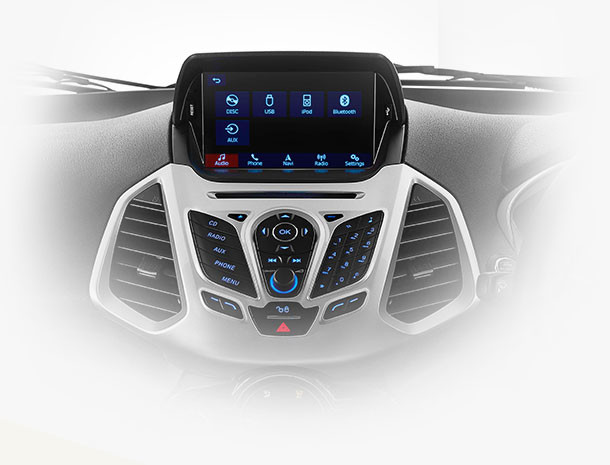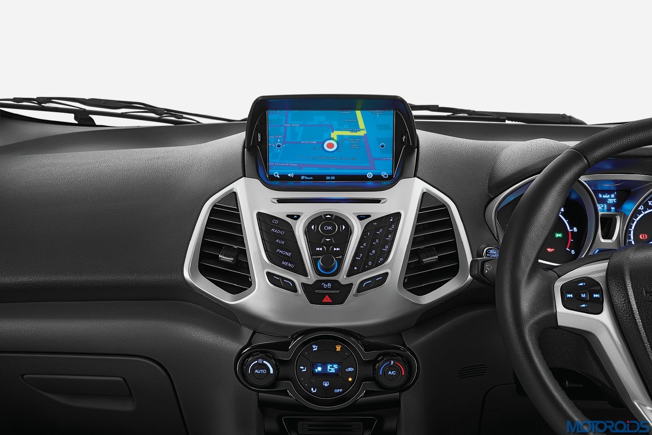 Ford India has added the 8.0-inch AVN touchscreen system as standard fitment to the EcoSport Titanium and Titanium+ grades, replacing the SYNC 1 system. This system, previously restricted to the fully loaded Platinum grade, features embedded satellite navigation, a rear view camera and a DVD player, along with USB, AUX and radio.