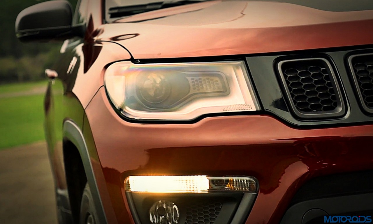 The Compass’s front bumper has its lines inspired by its bigger brother, while the twin, exposed tow hooks are a Trailhawk exclusivity.