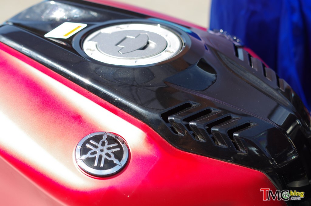 The new design with sleek LED headlight, the fins on the fuel tank and the YZF-R1 inspired tail will put a smile on the owner’s face, just like Maverick here