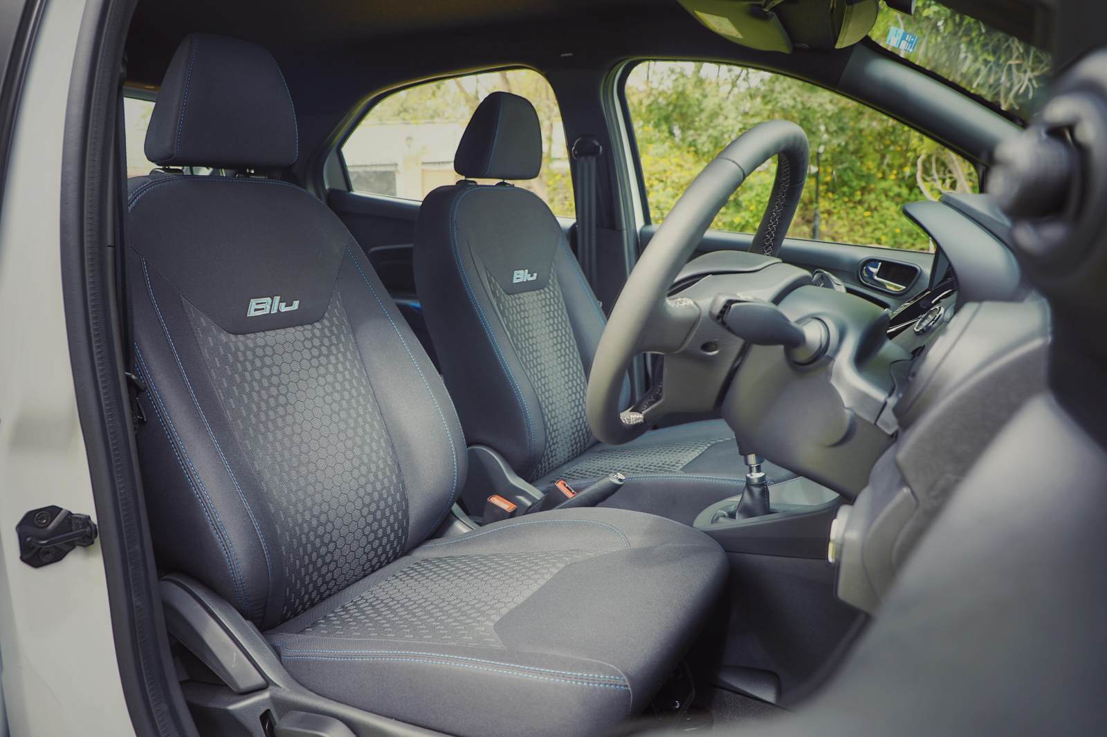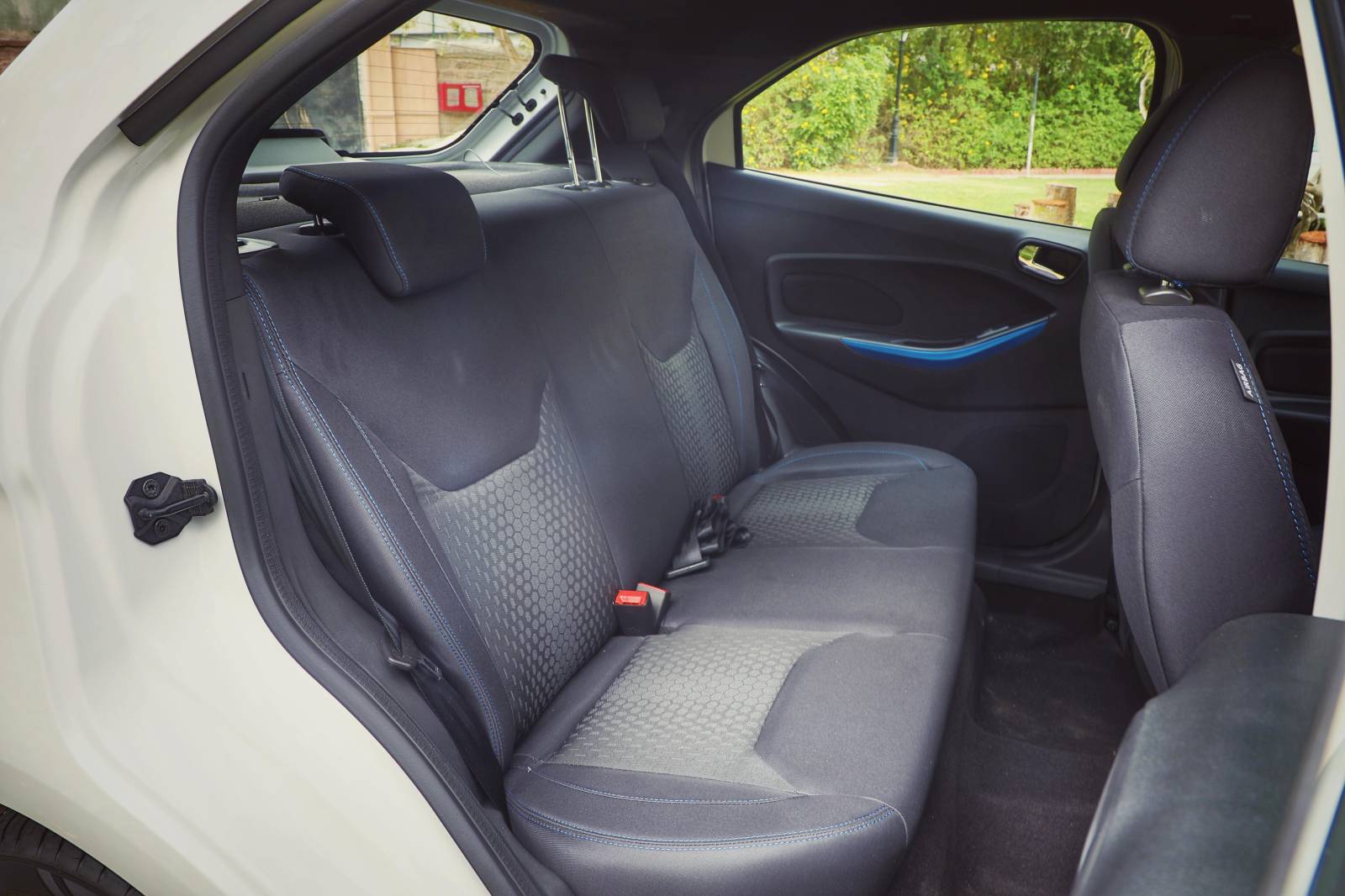 The new Figo also gets a new floating-type display which isn’t compatible with Android Auto or CarPlay but gets in-built navigation and also doubles up as a display for the reversing camera. It is pretty smooth to operate too and the audio quality from the speakers is pretty tight. Besides that, the Blu variant gets all-black fabric upholstery with contrast stitching and Blu lettering on the seats, rain-sensing wipers, auto headlights and an electrochromic IRVM.