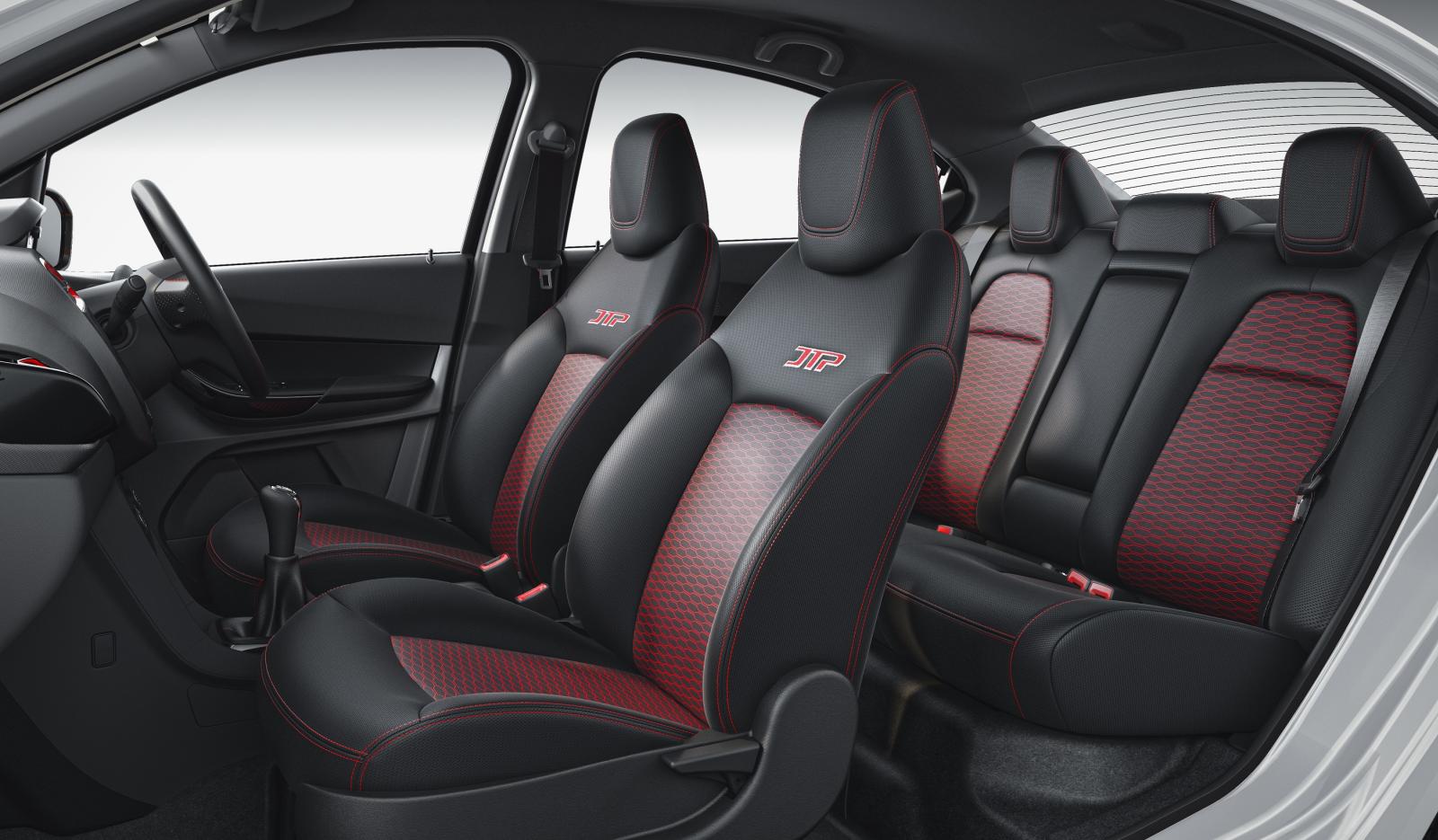 The pictures suggest that the Tiago JTP carries on with manual controls for the air conditioner, while the Tigor JTP retains its automated controls. In addition to this, the AC vents are outlined in red, the steering wheel is still leather-wrapped and gets contrast stitching, along with the upholstery. Aluminium pedals and a red geometric pattern on the seats is as things were on the earlier example. Safety aids like dual airbags and ABS with EBD are a part of the standard equipment and both cars are still available in Red and White body colour only.