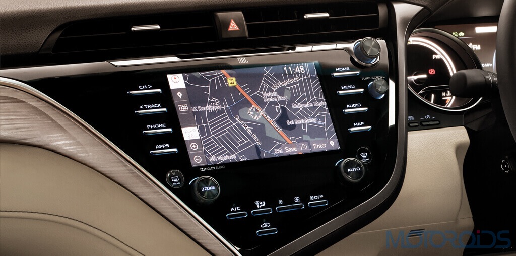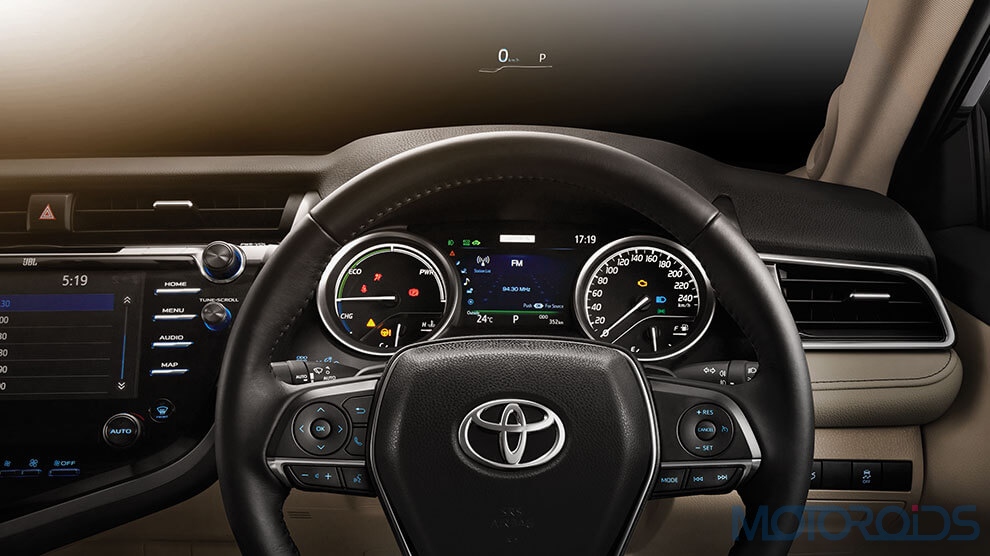 Together combined, both power sources crank out 218 PS. All that is routed to front wheels via a CVT which can also be tweaked through steering mounted pedals. The driver can switch between 3 driving modes – Eco, normal and Power. All the hybrid trickery makes the 2019 Camry boast of an efficiency figure of 23.27 km/l!