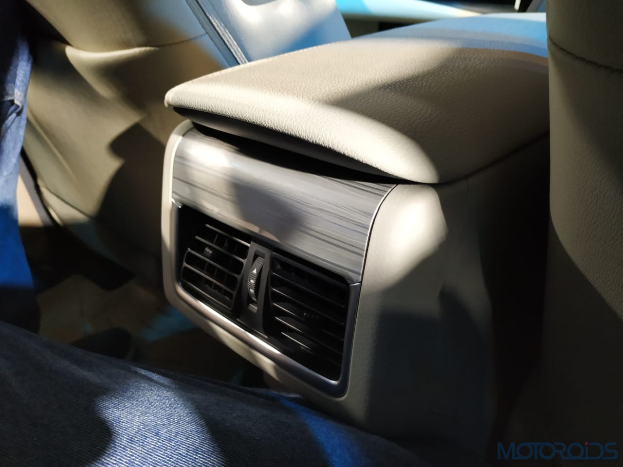 Power reclining rear seat backrest, touch control switches on the rear seat central armrest, 3-zone aircon, Qi-compatible wireless phone charger, rain sensing wipers, electronic parking brake and leather upholstery. Oh, there’s a tilt & slide sunroof too.