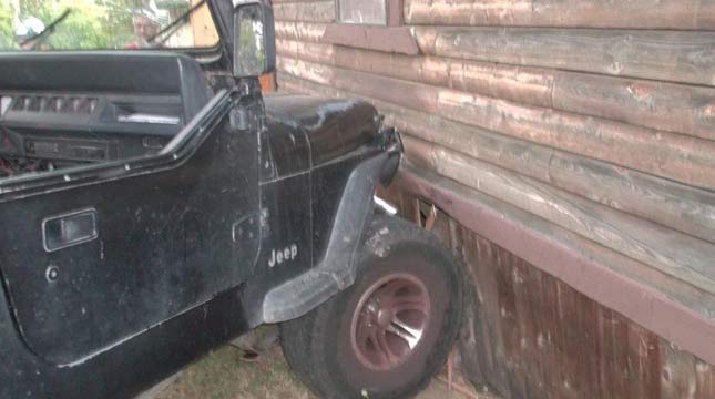 However, the child managed to sneak out of the house again and enter the Jeep. But this time, he accidently got the Jeep out of the gear. The car rolled off on the slope and hit a house. Nobody was hurt but the house and the Jeep suffered minor damage.