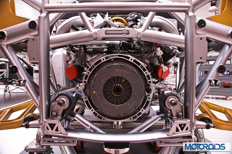 The push rod rear suspension with specially made “gold” shocks by Ohlins.