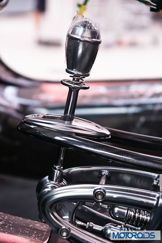 Even if the gearbox lever is an electric switch, Pagani designed a complicated leverage underneath just to give the right, mechanical feel to the driver.