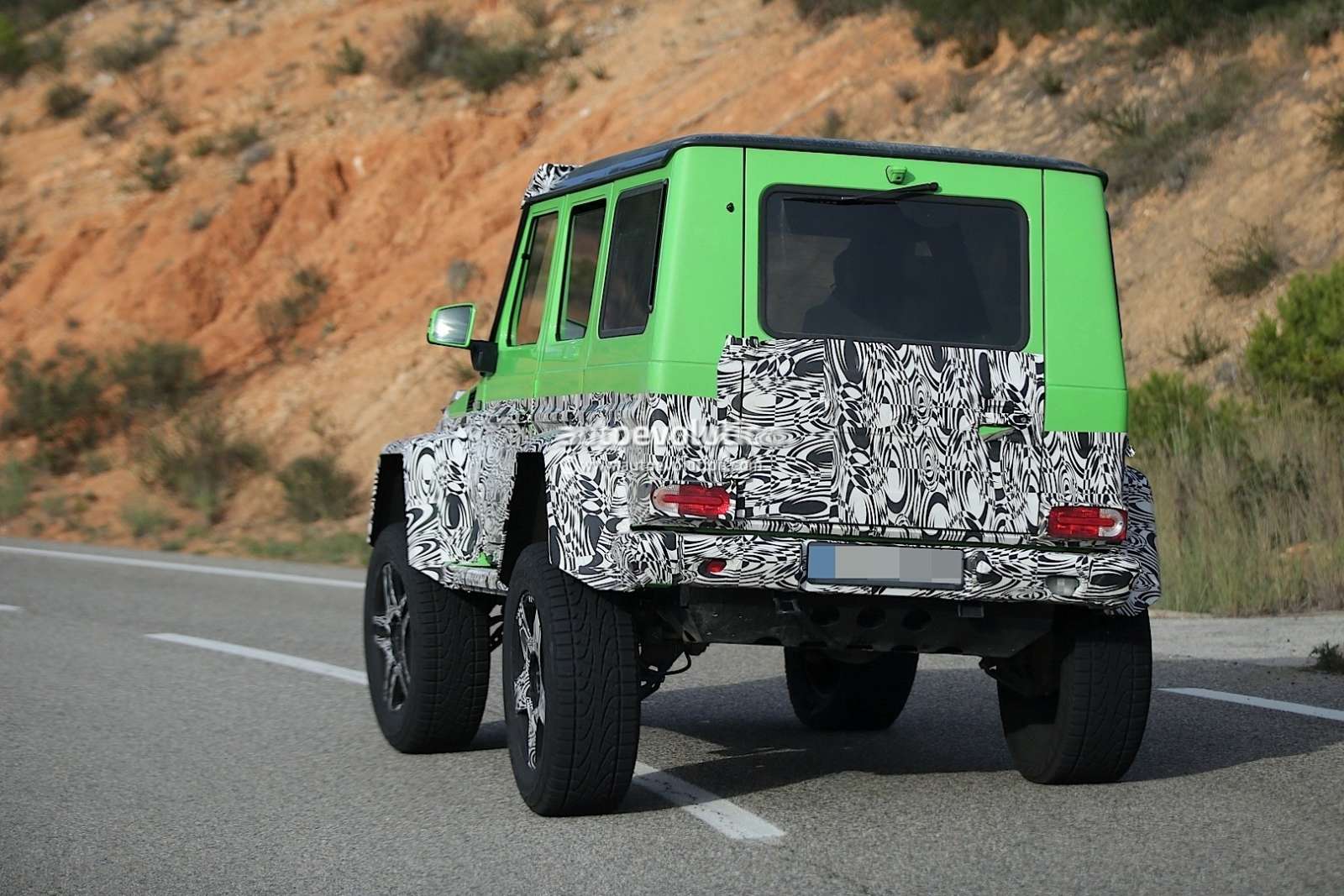 The hardcore, built-to-order Mercedes Benz G63 AMG 6×6 took the world by storm, but was a little big, too big actually- six humongous wheels full of boxy, vault-like, £370,000 Mercedes Benz G-Class pick-up. What we have here are some spy images of a 4-wheeler version of the Mercedes Benz G63 AMG 6X6 undergoing testing. Essentially it’ll be a standard G63 AMG strutted up in the wake of it’s six-wheeled cousin, with Mercedes Benz offering the best of both the worlds- mixing the relatively sane dimensions of the G-Class with off-road capabilities of the G63 AMG 6X6, but sadly the pick-up body style goes.