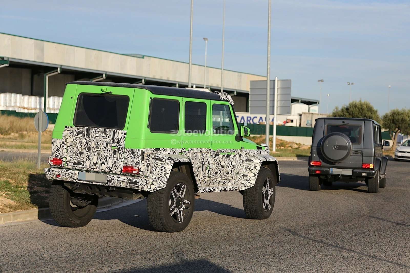 Notice how jacked-up the new G63 AMG 4×4 is, when compared to the standard G-Class in front.