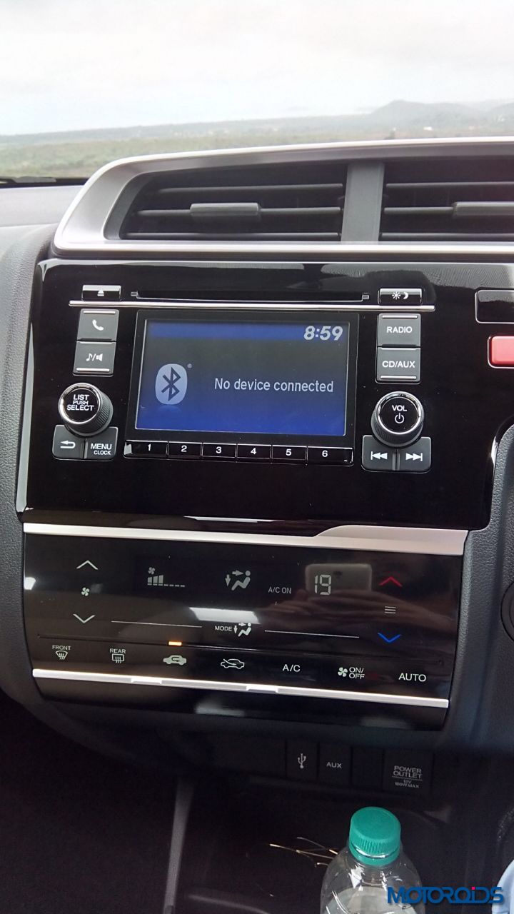 The cabin of the 2015 Honda gets an all-black interior with silver metallic accents on some of the trim pieces. Honda has given the new Jazz features that befit a premium hatchback. The steering wheel gets integrated controls for the audio and telephony system. Depending on the variant, the new Jazz comes either with a 5-inch non-touch or a larger 6.2-inch touch-sensitive Audio Visual Navigation (AVN) display on top-end variants. Even the lower variants get built-in handsfree telephone feature and display the feed from a reversing camera in three modes – normal, wide and top-down. The audio system gets Bluetooth and AUX-in/USB connectivity for your iPod, smartphone and a power socket. The system with the larger touch-enabled display gets a DVD-playback feature, but strangely only gets a ‘normal’ view mode for the reverse camera.