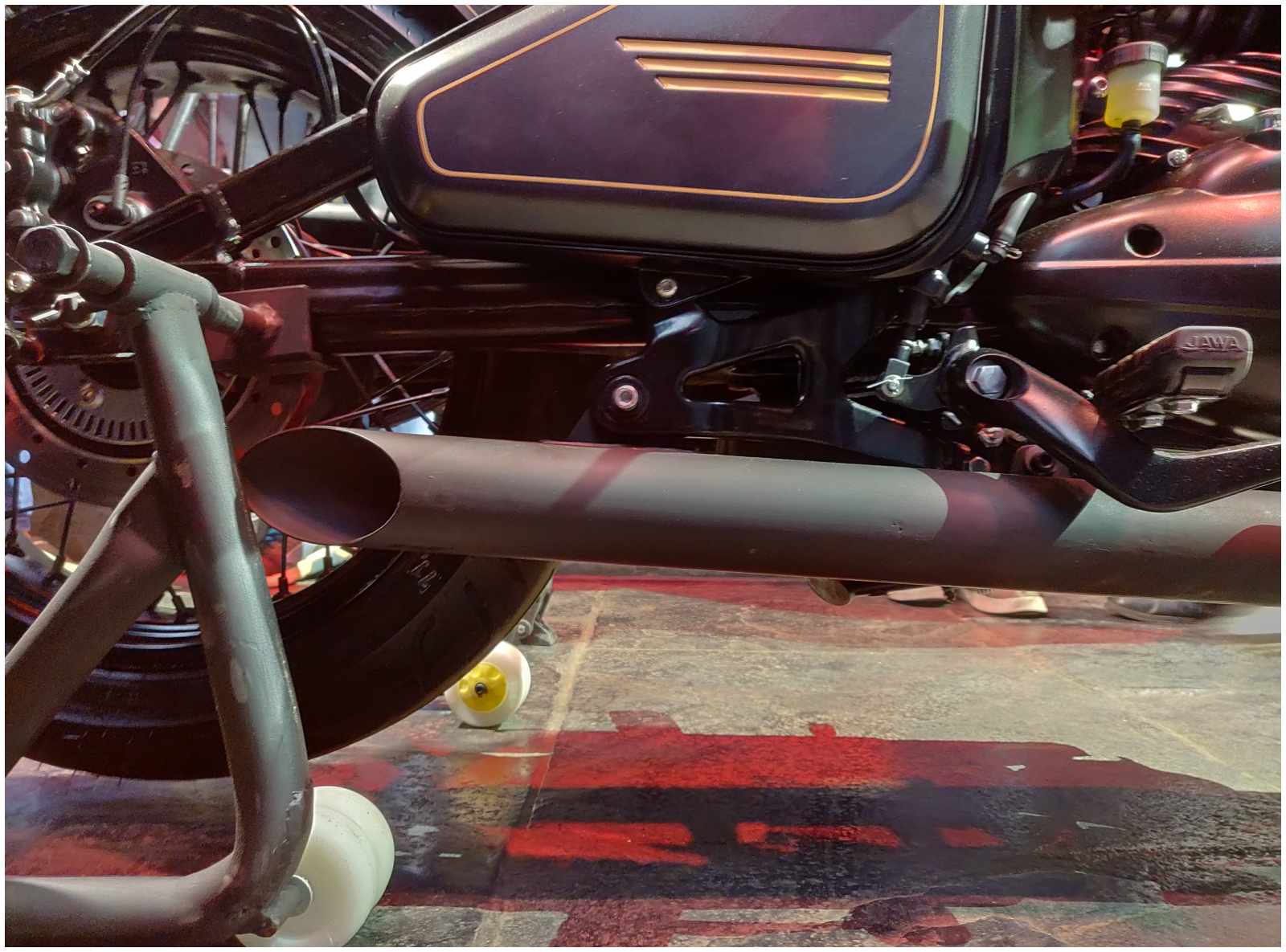 Jawa hasn’t revealed all the exact specifications of the bike yet, but they have informed us about a few characteristics and dimension figures. The Perak is longer than its smaller Jawa cousins and gets a 20mm lower ground clearance for a more relaxed riding stance. This means the bike gets a total ground clearance of 145mm, an all-new swingarm and a slightly stiff chassis to improve handling and provide a linear feel on the road. The bike also gets front and rear disc brakes which are governed by specially tuned Continental ABS. Unlike the previously previewed model, the production-spec Perak is fitted with Ceat tyres instead of Pirellis and the bar-end mirrors are not inverted.