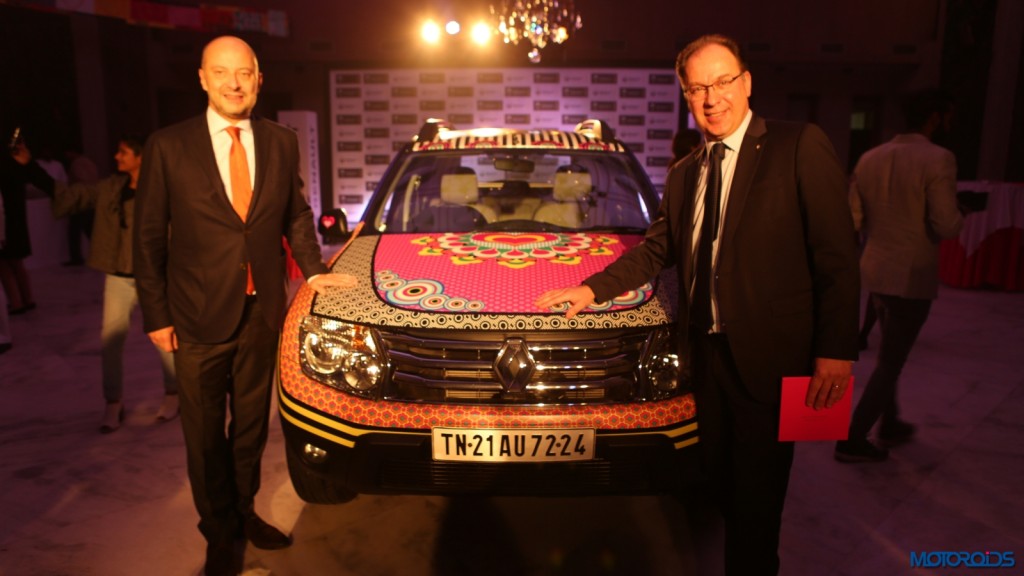 The artistically designed Duster, which is inspired by his collection – INDIAN was unveiled by Mr. Rafael Treguer, VP, Sales & Marketing, Renault India along with Mr. Francois Richier, French Ambassador to India and Manish Arora.