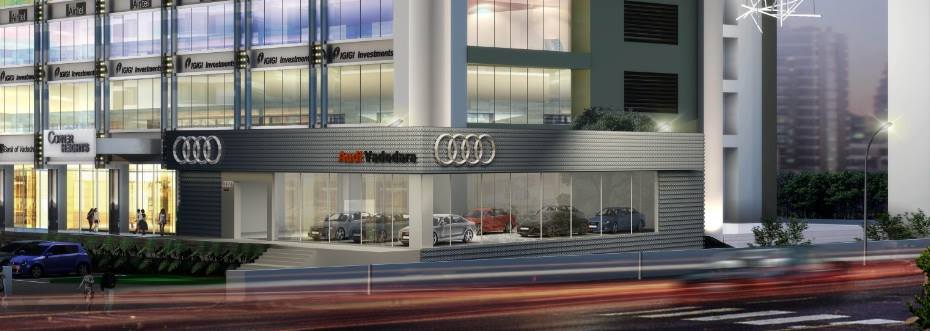 Located in the heart of the city, on Vadsar Ring Road, Audi Vadodara is spread over a total area of 9000 sq. ft. With the signature Audi honeycomb aluminum façade on the exterior, and a display area that can accommodate 7 cars, Audi Vadodara will display the entire range of Audi cars available in India. Audi Vadodara will also house an Audi Shop and the Audi Exclusive elements, where customers can order customized products and purchase a variety of Audi branded merchandise.