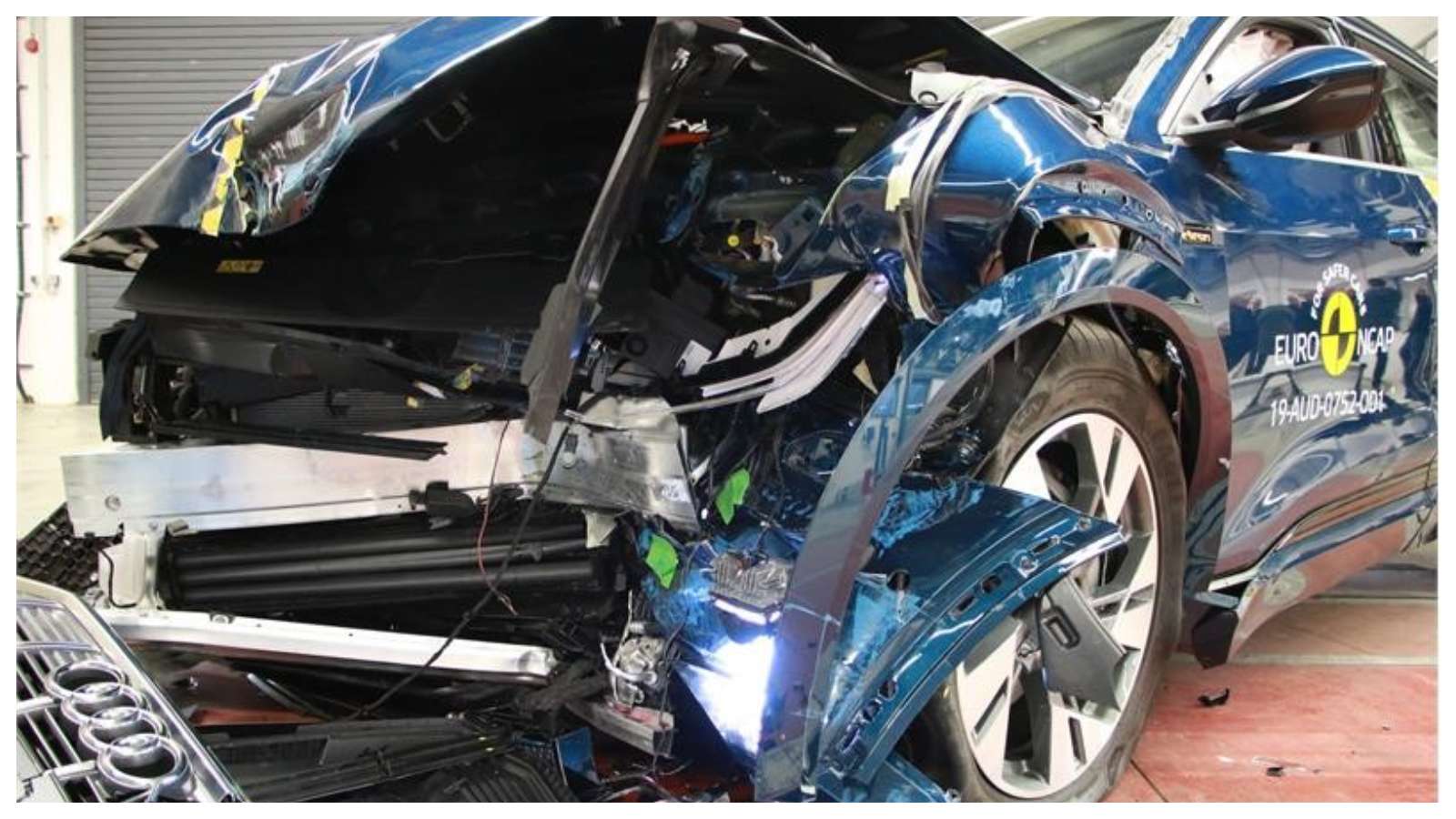 The passenger compartment of the e-tron remained stable in the frontal offset test. The Dummy readings indicated a good amount of protection for the knees and femurs of both, the driver and passenger. Audi had also shown that a similar level of protection will be provided to occupants of different sizes, sitting in different positions. In the full-width rigid barrier test, the protection was good enough for all the critical and vital parts of the body, for both dummies, and in the side barrier test, the protection was even better and the car scored maximum points.