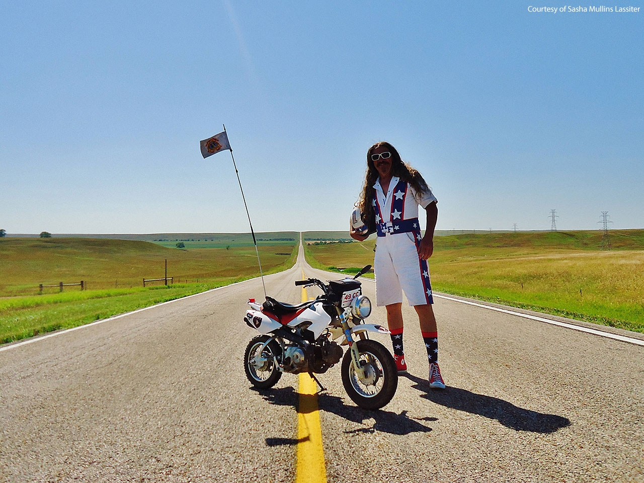 What makes the ride more enduring is that Kevin measures at a rather tall 6.1 feet and riding a bike less than half his height wasn’t the most comfortable job in the world. Kevin added his own dose of fun to the ride by dressing up in stars and stripes outfit customized for the event with matching helmet and socks. And though he was upto the challenge throughout the journey without fuss, he did manage to get into trouble while being chased by a funnel cloud on the way and on another occasion when the handlebars fell off during a fuel stop.