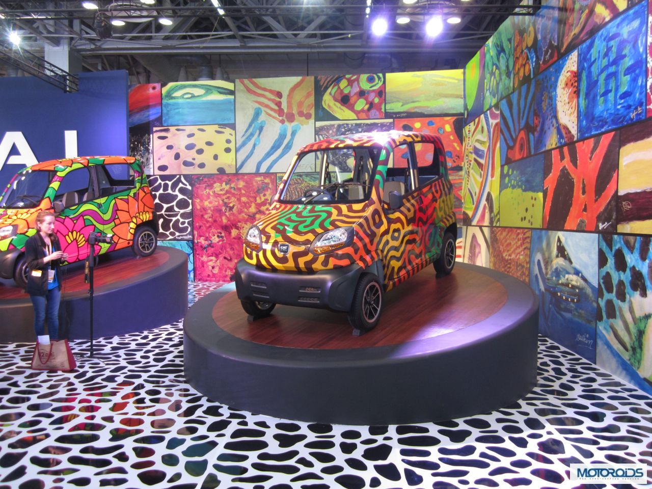 From the dawn of the Industrial Revolution, design engineers have used the automobile body as a means through which they could express their artistic visions. Rarely, however, does the body of the car become the canvas upon which the art, not design, becomes the primary focus of the artistic expression. Featured at the Auto Expo 2014 is the new Bajaj RE60 Signature Collection, a set of eye-‐popping, vibrantly painted Bajaj RE60 models. The showcased collection represents an association between Bajaj Auto Ltd. and the renowned Australian artist and sculptor, Christopher Hogan.