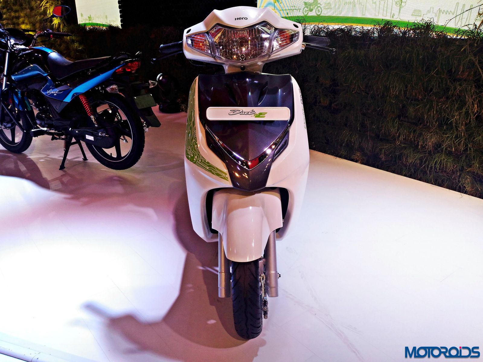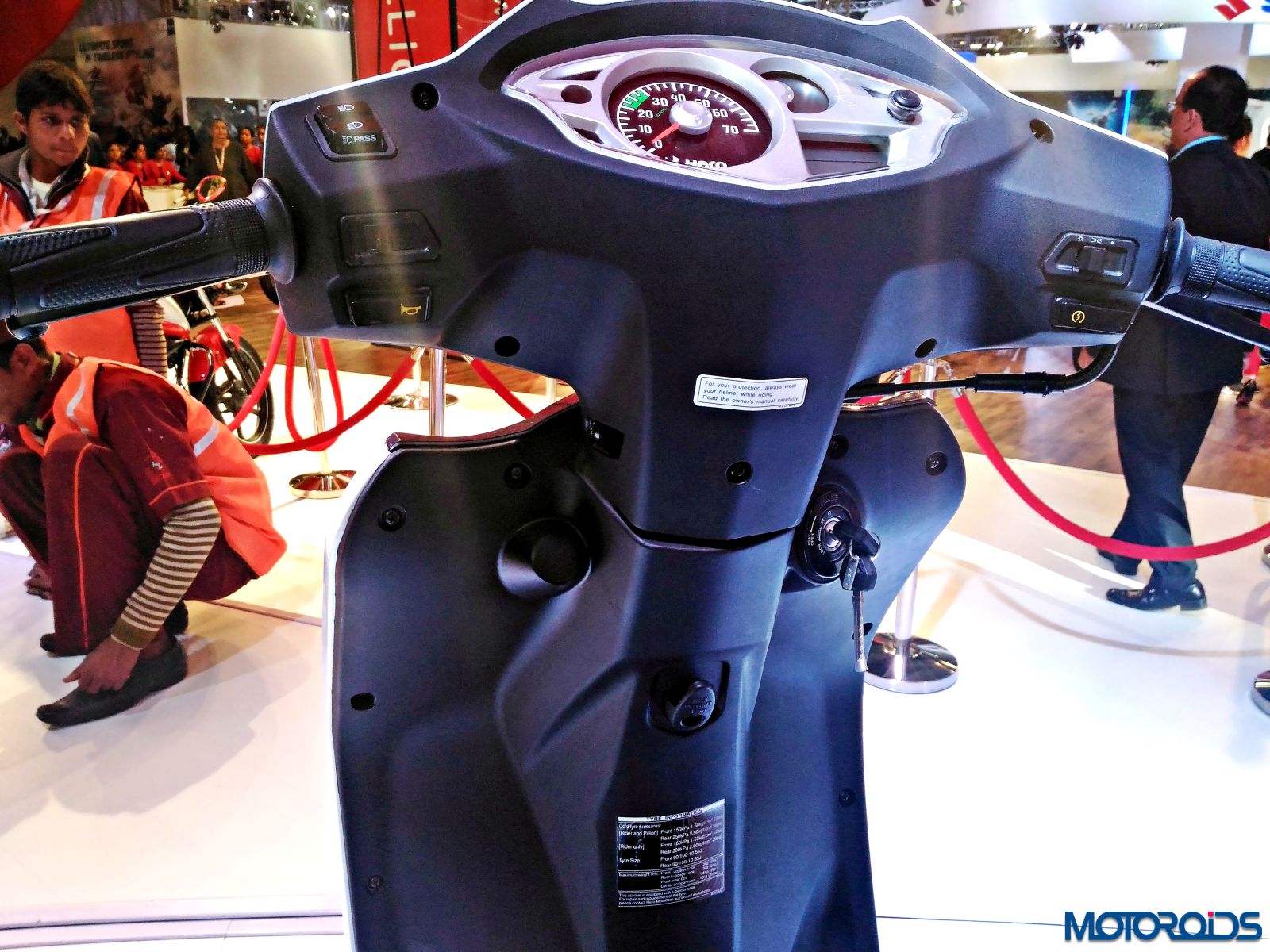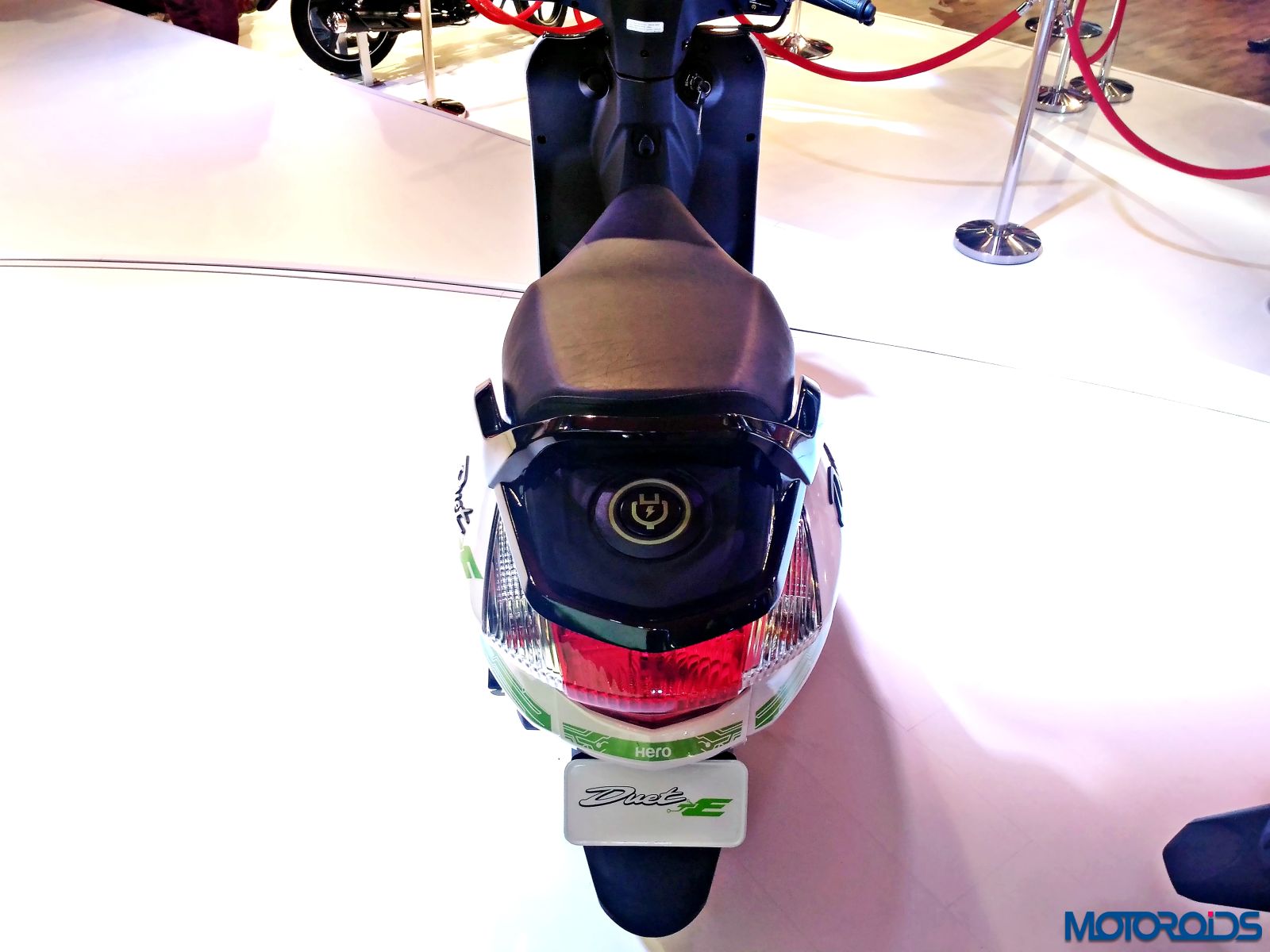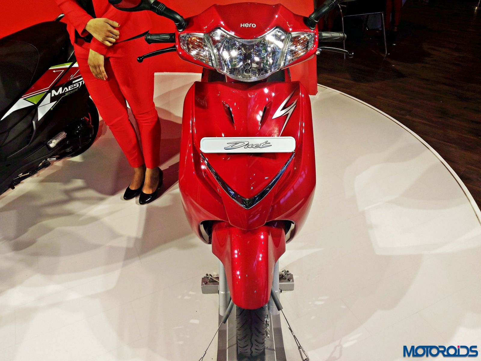 The Hero Duet exhibited at the Hero pavilion wasn’t too different from the stock model, apart from a new graphic scheme that looks like an “S” on the front apron and another one that appears like an “R” on the side panel. The scooter shares its platform and engine with the Maestro Edge so the output numbers of 8.31 BHP of power at 8000rpm and 8.30 Nm of torque at 6500rpm remain identical to the Edge.
