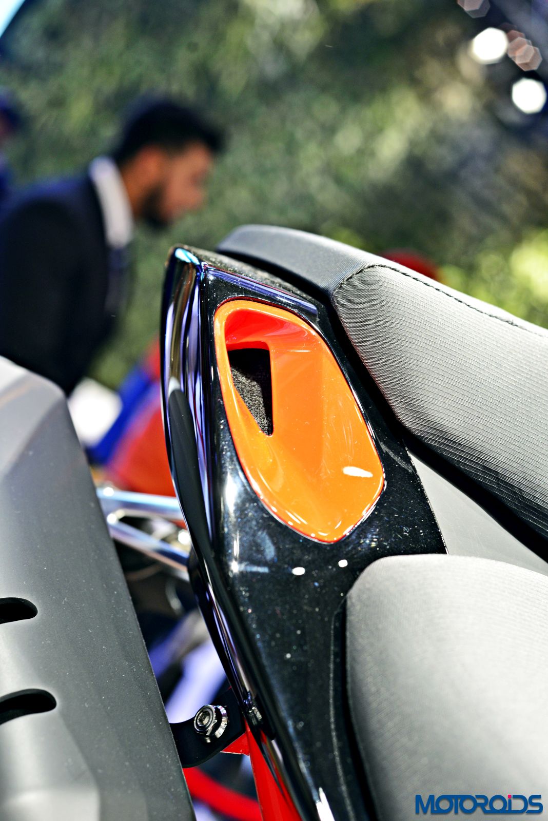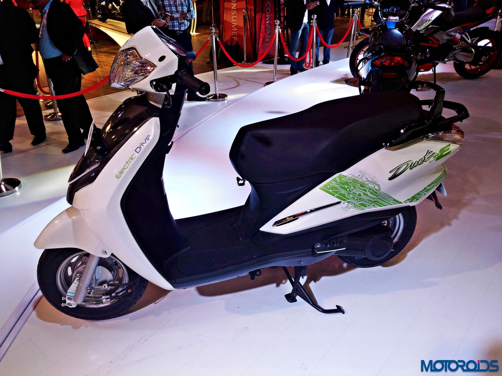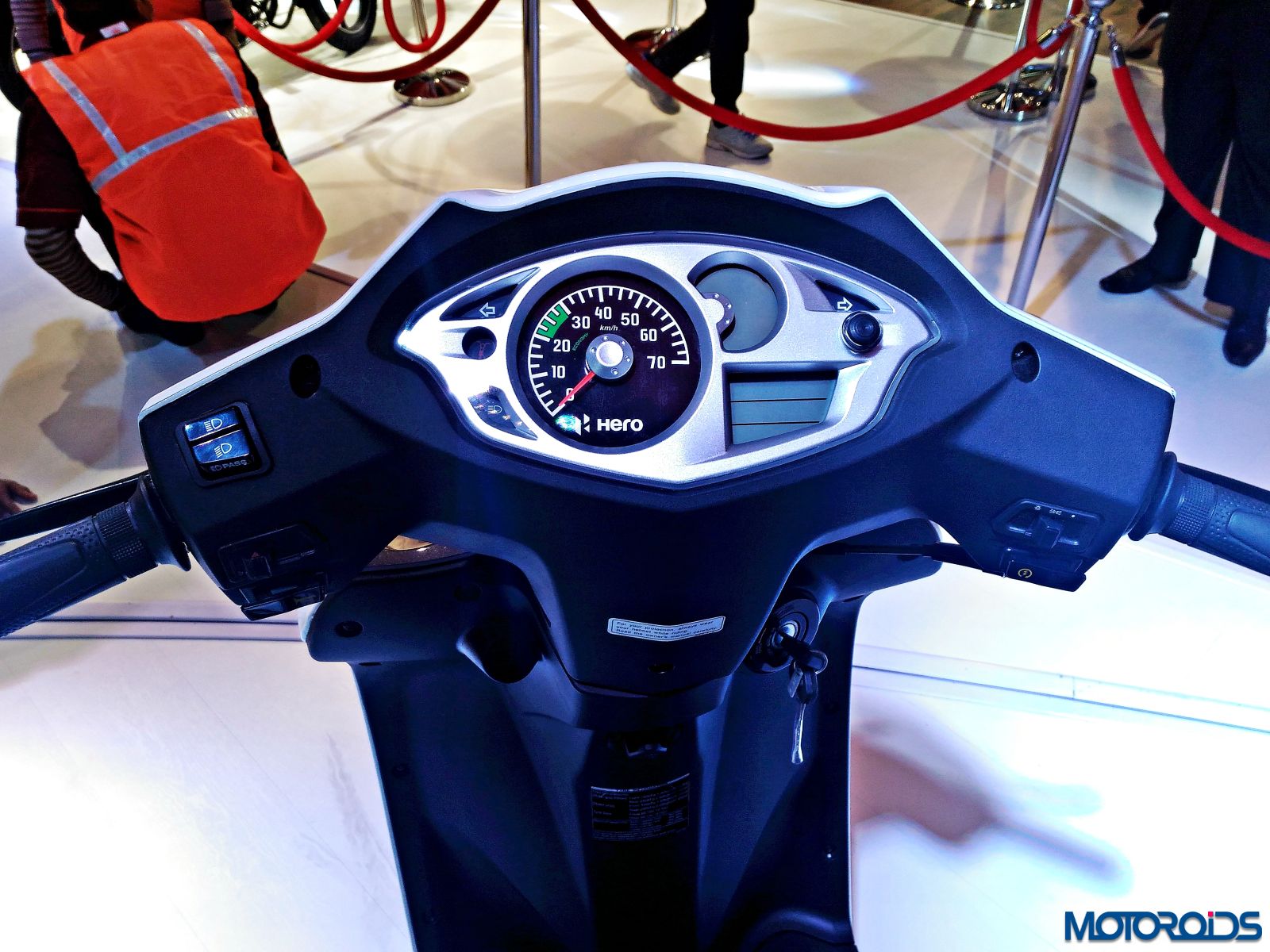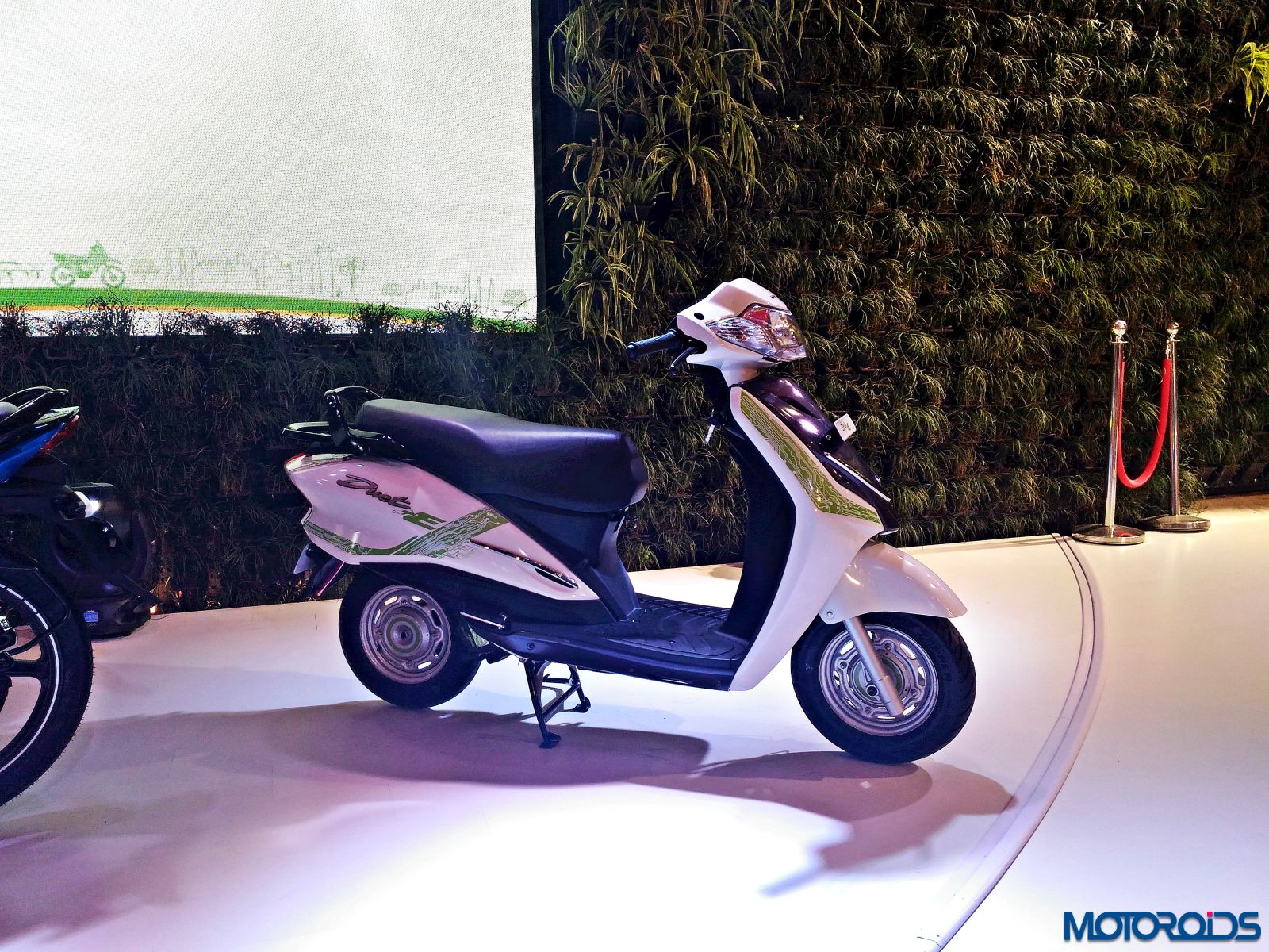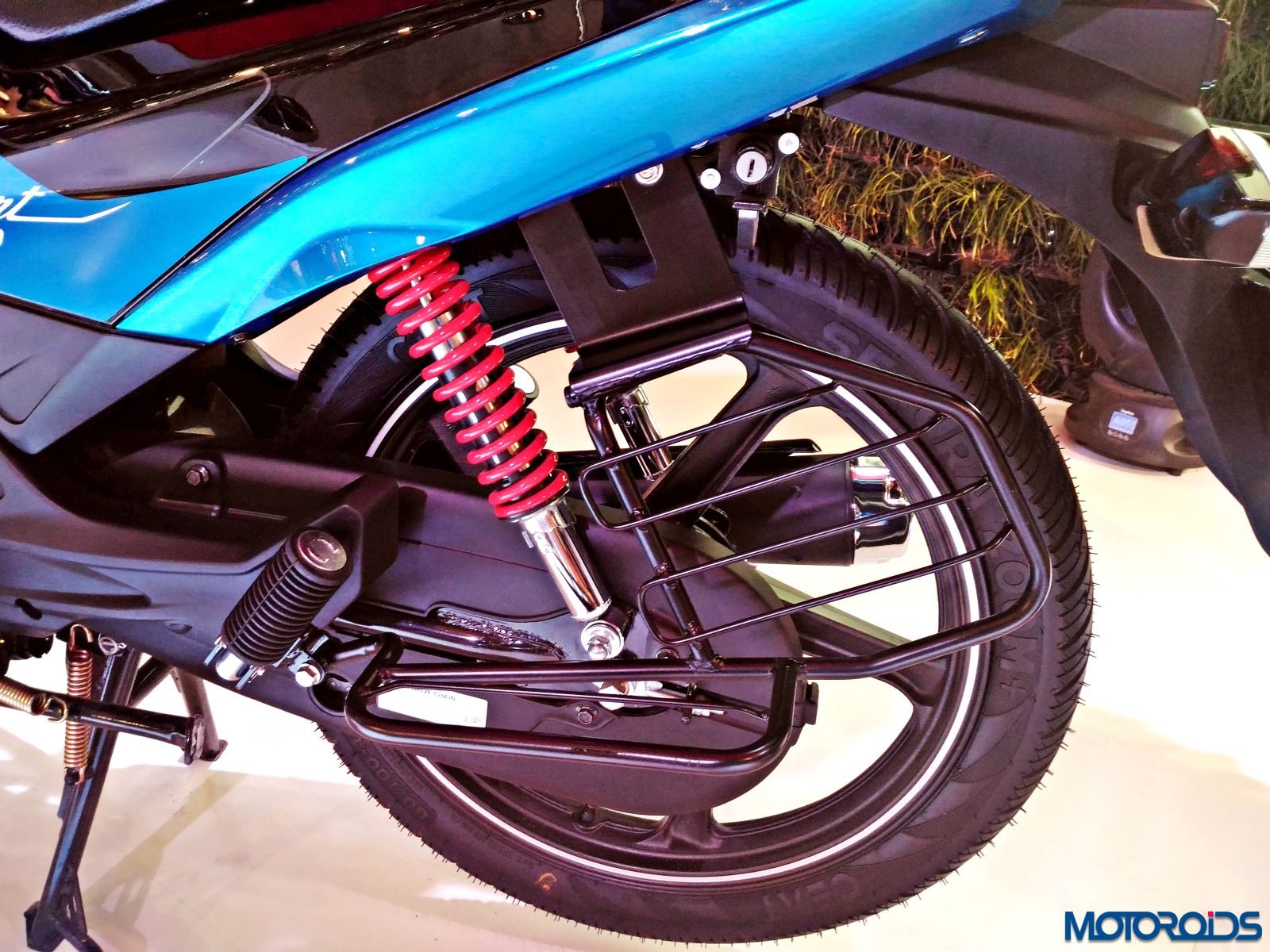 The Hero Duet exhibited at the Hero pavilion wasn’t too different from the stock model, apart from a new graphic scheme that looks like an “S” on the front apron and another one that appears like an “R” on the side panel. The scooter shares its platform and engine with the Maestro Edge so the output numbers of 8.31 BHP of power at 8000rpm and 8.30 Nm of torque at 6500rpm remain identical to the Edge.
