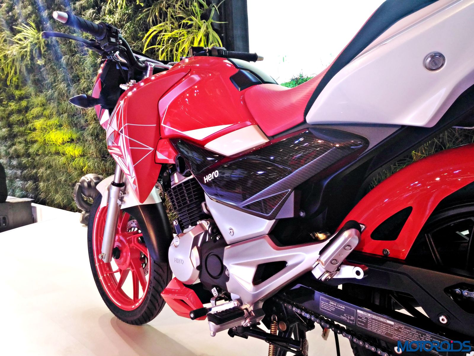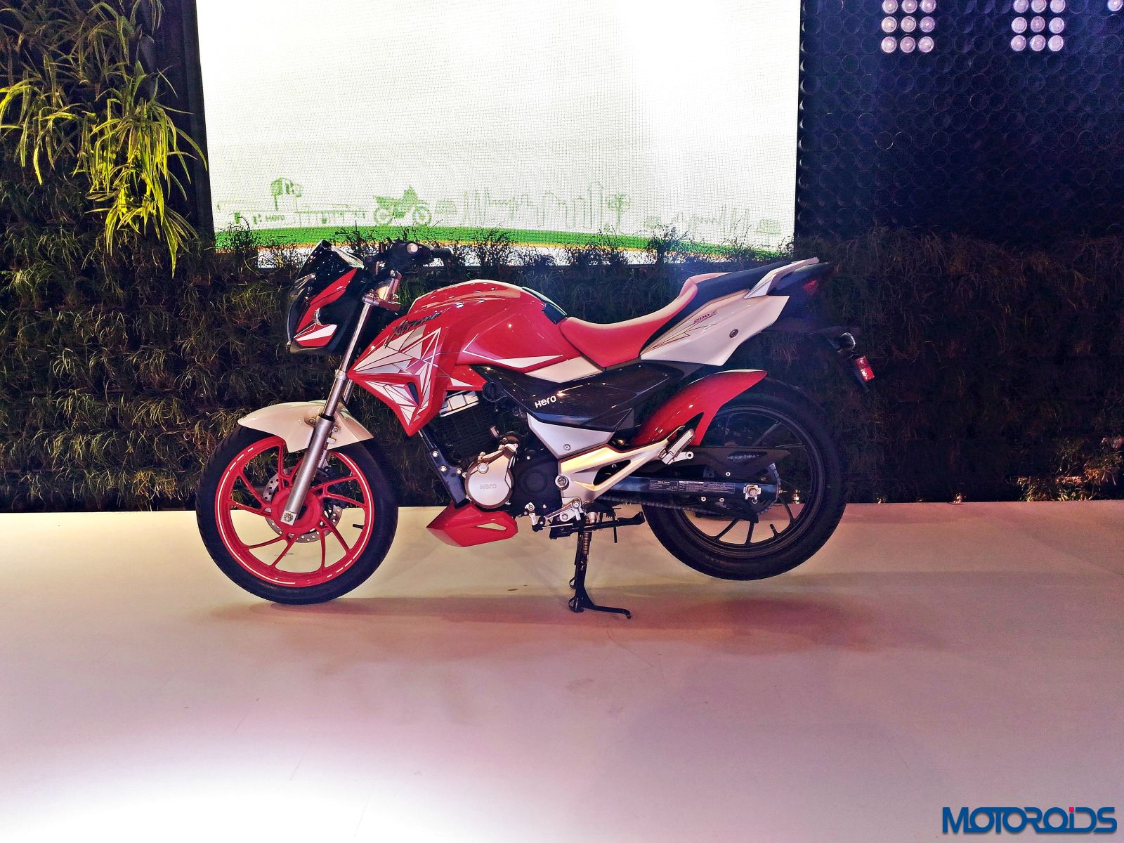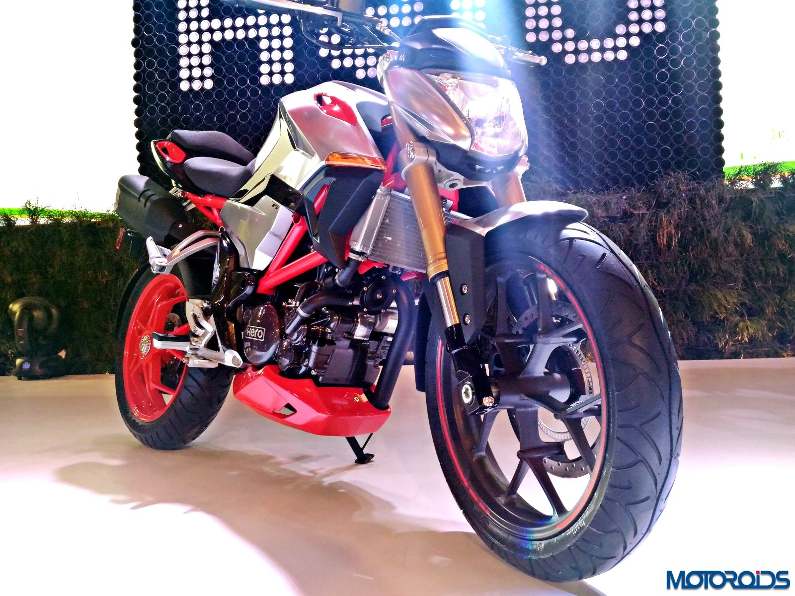 The new, more powerful Hero Hunk was also unveiled at the 2016 Auto Expo. For 2016, the motorcycle will receive new set of graphics and an engine that would be borrowed from the new Xtreme Sport. The new Hunk now puts out 15.6 BHP at 8500rpm and 13.5 Nm of torque at 7000rpm from the 149.2cc  air cooled, 4-stroke single cylinder OHC engine. The motorcycle gets new graphics which Hero calls “Sporty Speed Line Graphics” while the instrument panel is updated with a side stand warning indicator. The unit at the 2016 Auto Expo was the Matte Black version of the motorcycle.