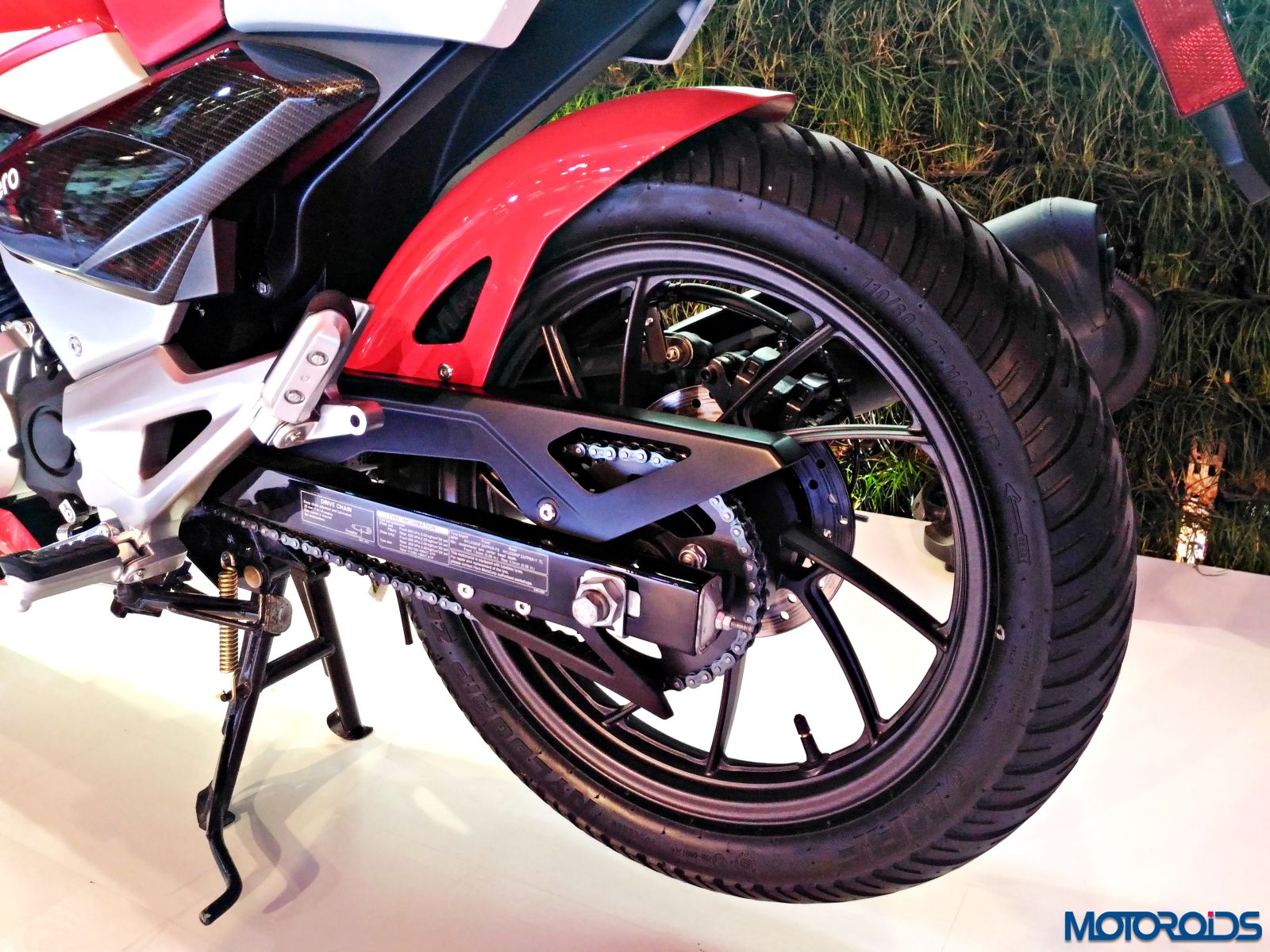 The female audience specific Hero Pleasure was also present at the pavilion. The scooter did not get any visual update and the unit on display at the motoring event donned the Radiant Red and Matte Grey paint scheme from the 10 options that the Pleasure is available with. The front of the scooter received red headlight mask, apron and mud guard while rest of the body was draped in matte grey paint with red and white graphic highlights on the side panel. Mechanical specifications include a 102cc air-cooled, 4-stroke single cylinder OHC engine that delivers about 6.9 bhp of power at 7000rpm and 8.10 Nm of torque at 5000rpm.