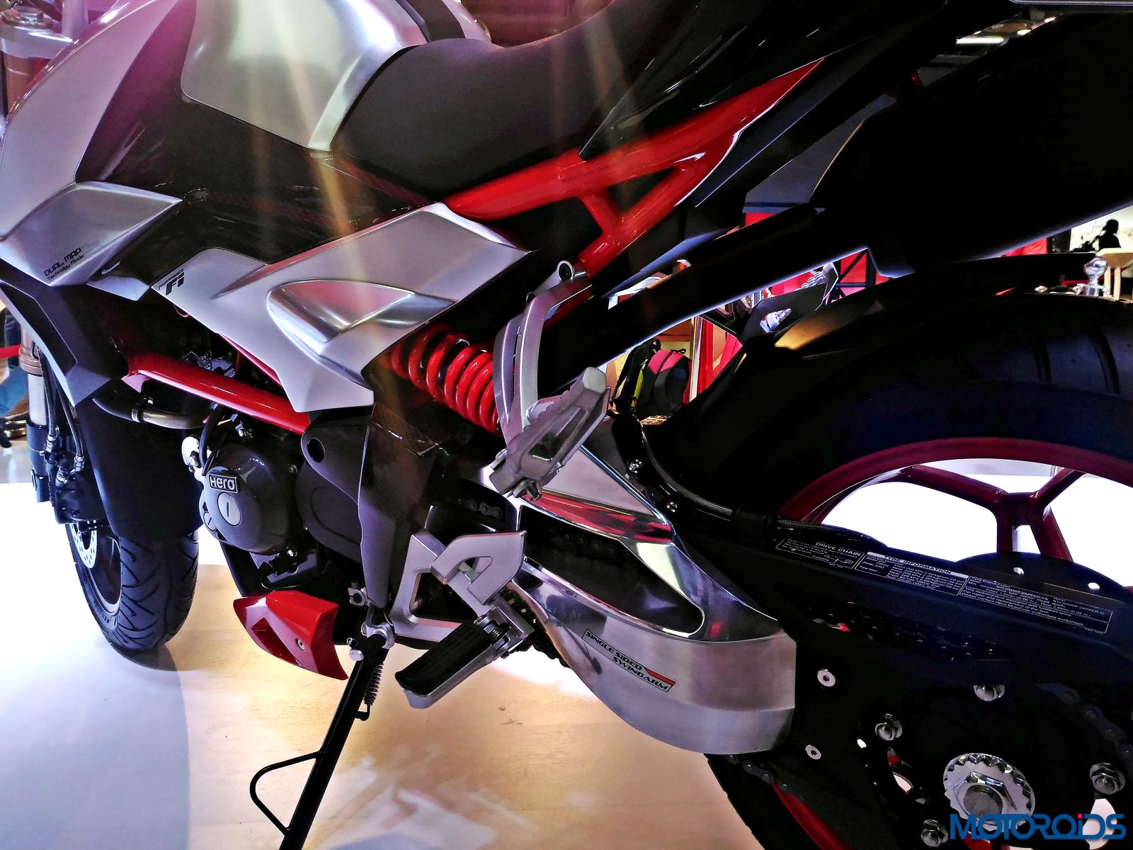 The Hero MotoCorp pavilion at the 2016 Auto Expo was mostly about cosmetically updated products. So apart from the more powerful Xtreme 200 S, the production spec HX250 and the XF3R concept motorcycle, most of the products were cosmetically updated motorcycles and scooters with new paint scheme and graphic options. We have already covered some of the leading exhibits such as the Xtreme 200 S, HX250, XF3R concept, new Karizma Duo and Splendor iSmart from Hero’s pavilion on Motoroids. In this specific post we will cover the rest of products at the Hero Motorcorp Pavilion.