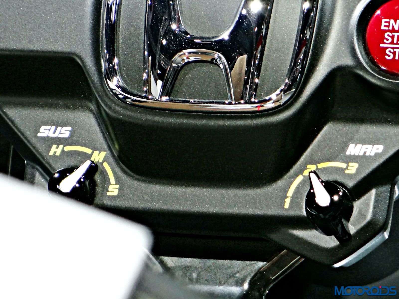 The concept is lavishly equipped with loads of carbon fibre to keep the weight in check while a set of Ohlins suspensions perform the damping duties. A multifunction Formula 1 style steering wheel is equipped with all the necessary switches including a Start/Stop button, turn indicator controls and paddle shift. Suspension setting and engine map can also be adjusted at a flick of a switch with respective buttons at the bottom of the steering wheel. A heads up display indicates all the necessary information.