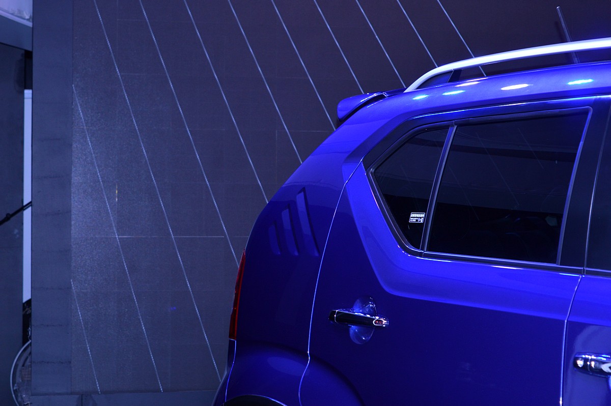 The chunky styling, jeweled headlamps, flared wheel arches and the deftly chrome trimmed front fascia has been retained from the concept, with mild alterations to the glasshouse and overhangs. The rear bumper gets a large black insert running across it, while the tail gets a couple of spoilers.