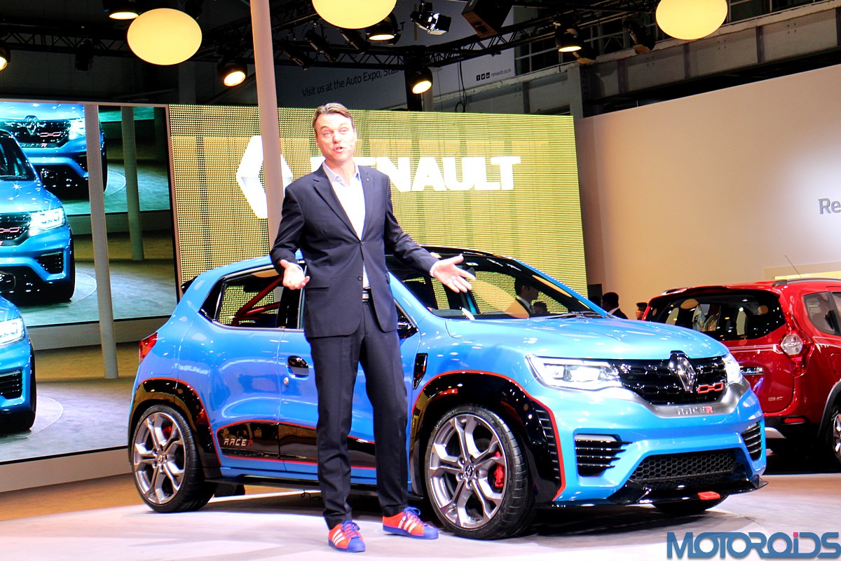 With over 90,000 bookings in the bag already, Renault can’t get enough of the Kwid. So much so, Renault India presented two concept cars based on the small wonder – the Kwid Climber and the Kwid Racer. Both concepts aim to showcase the potential and adaptability of the Kwid, be it on the road, or off it. The Kwid Climber features outdoorsy embellishments like headlamp protectors, exaggerated wheel arches, bumper extensions, and bigger tires wrapped around diamond effect wheels. The Kwid Climber dons a Flame Orange paint-job highlighted with electric blue accents on the arches, mirror caps and wheels.