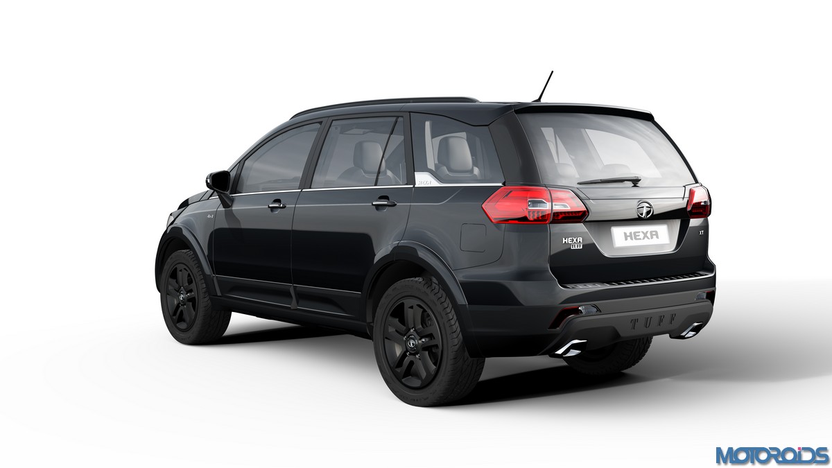 Alongside the production ready HEXA crossover, Tata Motors also showcased a customised example at the Auto Expo 2016, called the HEXA Tuff. The Tuff moniker calls for a positively mean all-black colour theme on the exteriors, along with bike rack at the back. The all-black colour theme encompasses pretty much everything on the outside, including the wheels, the once dual-coloured bumpers and even the chrome embellishments on the grille, exhausts, tail gate and around the fog lamps. The smoked projector headlamps from the standard HEXA are more at home on the Tuff avatar. In fact, the only streaks of chrome on the HEXA Tuff can be found on the door handles and windows.