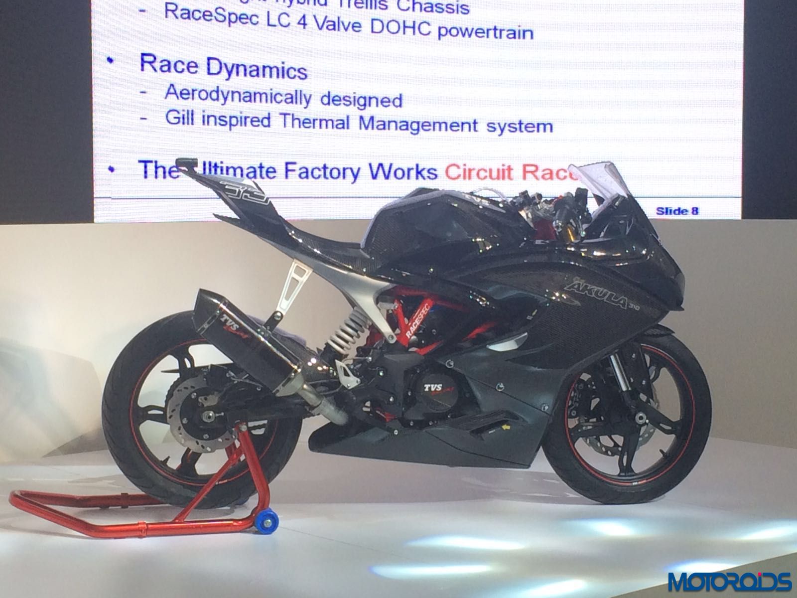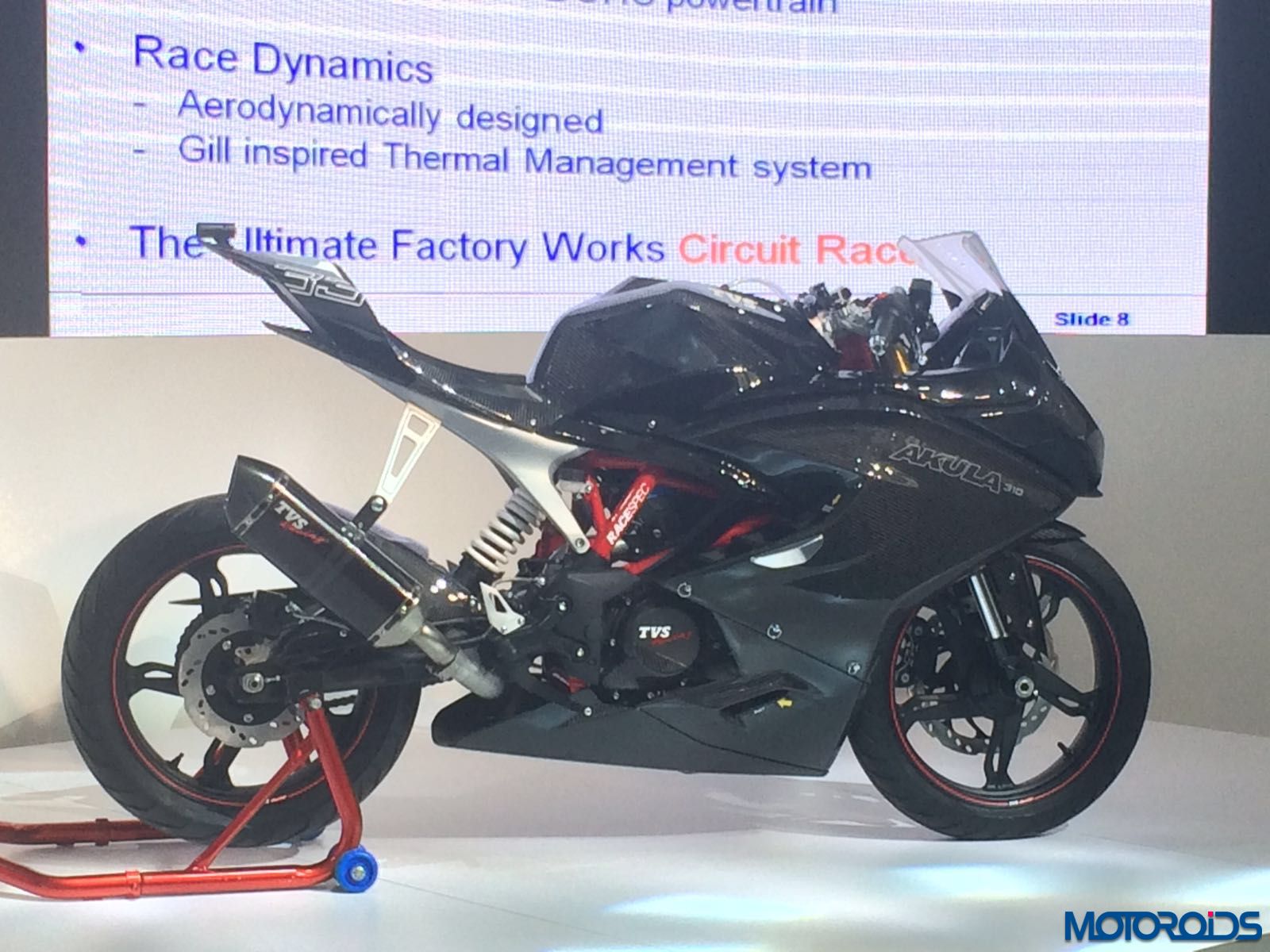 This is what a faired TVS Apache needs to look like! Commemorating 33 years of TVS racing, the Akula’s design is inspired by a Shark, which is what the Ruskis also call the scary sea creature. Gorge on these couple pictures while we try and update more information about this super cool racer.
