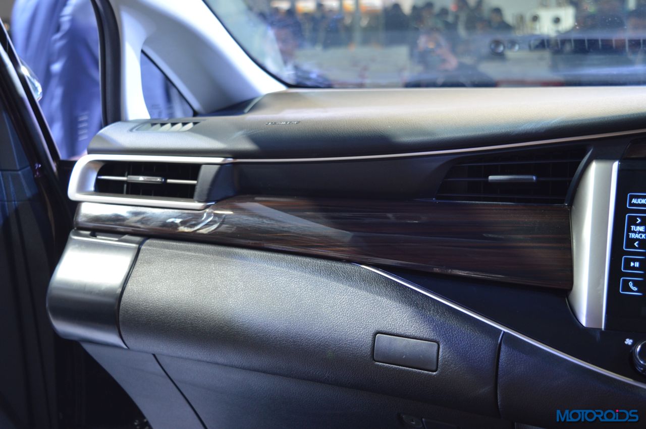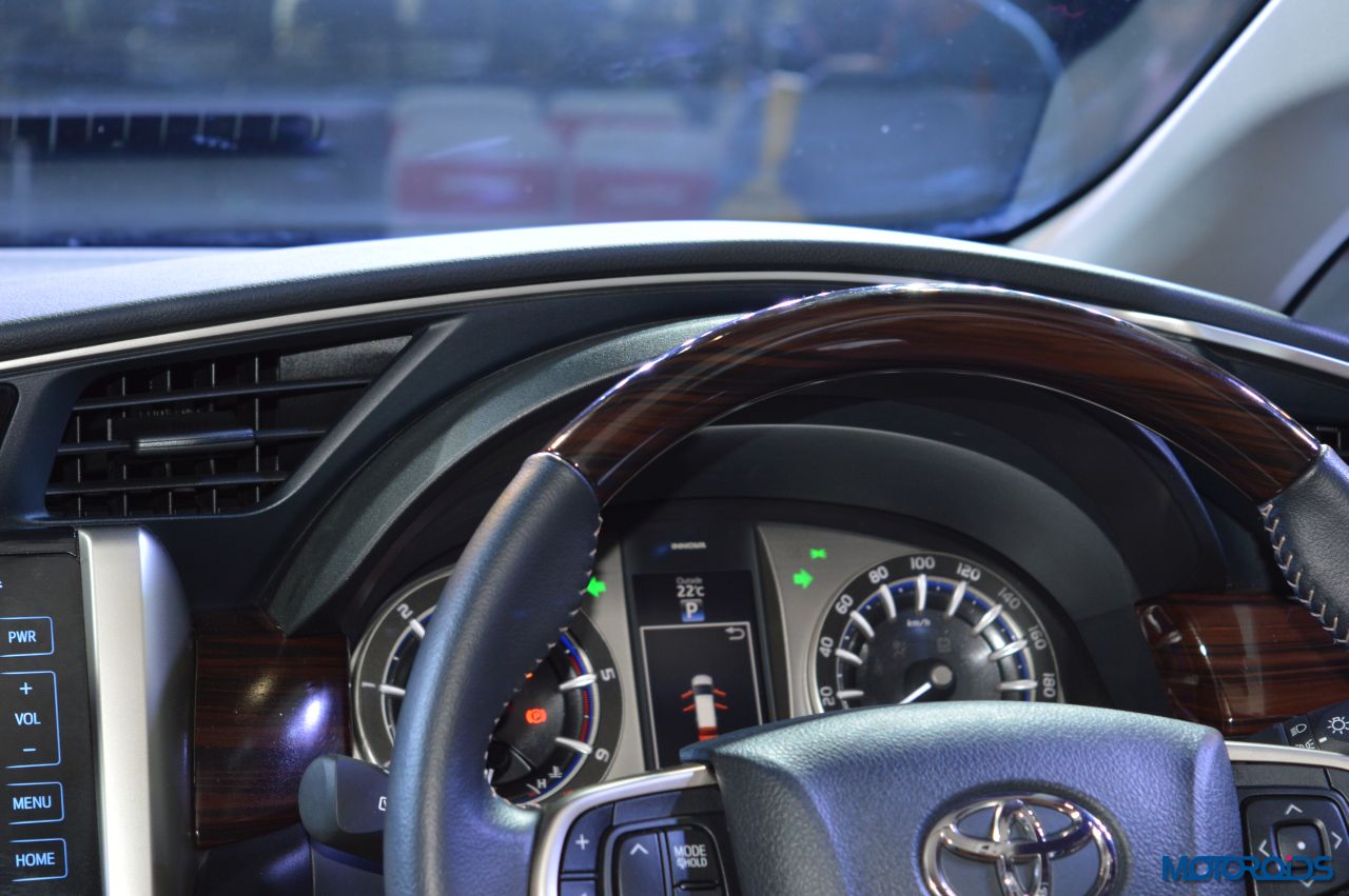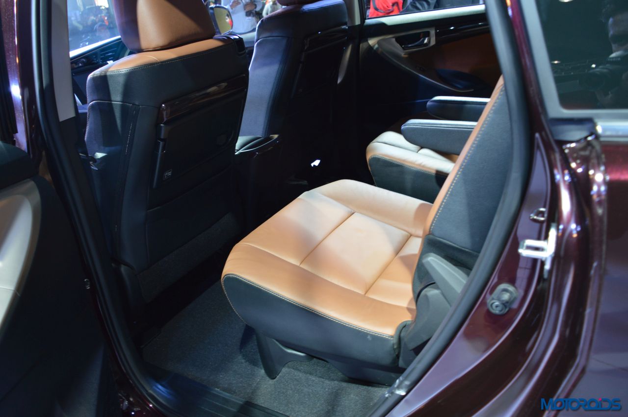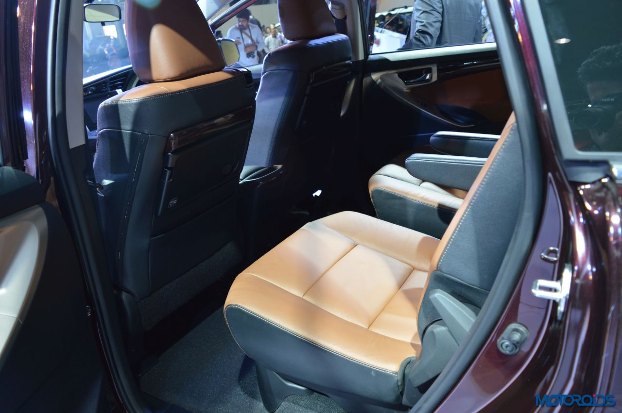The interiors are also all-new, and the revamped cabin is highlighted by a fresh dashboard. Combining straight lines and well contoured curves, the new dashboard design looks chic, while a choice of faux silver or faux wood inserts up the class. The Innova Crysta will come with features like automatic climate control with Rear Auto Cooler , 7″ touchscreen infotainment system with navigation, cruise control, power driver seat, 1-touch tumble 2nd row seats, 1-touch 3’d row space up seats , Front seat with easy slide from rear, a Smart Entry System with Start/ Stop Button and an Easy Closer back door.
